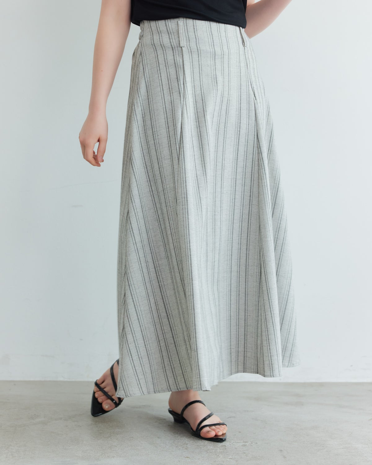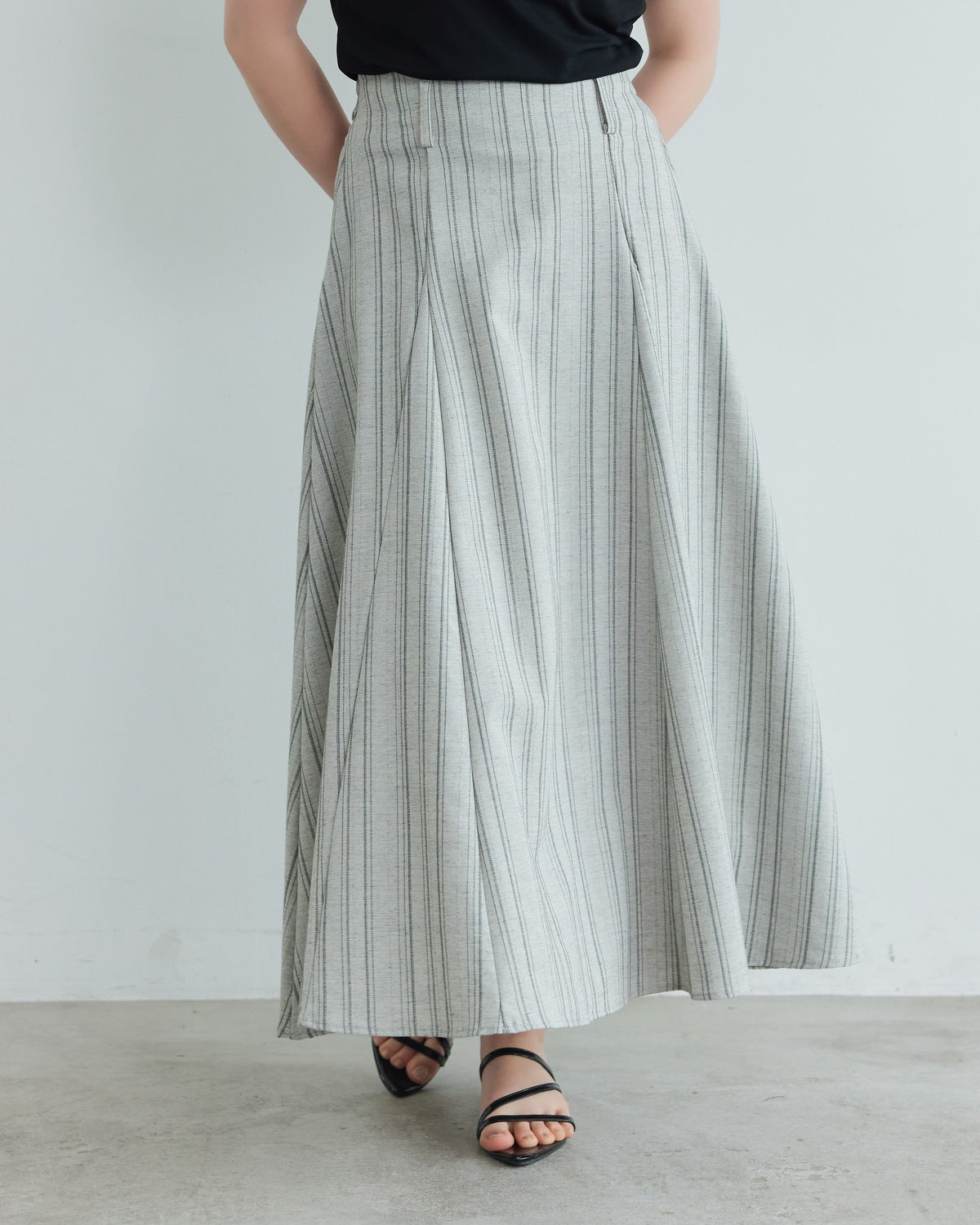他の画像を見る an chic 【別注】リネンストライプフレアロングスカート 通常価格 ¥ 4,500 販売価格 ¥ 4,500 税込 販売期間 2026/04/15 12:00 〜 カートに入れる お気に入りに登録する
