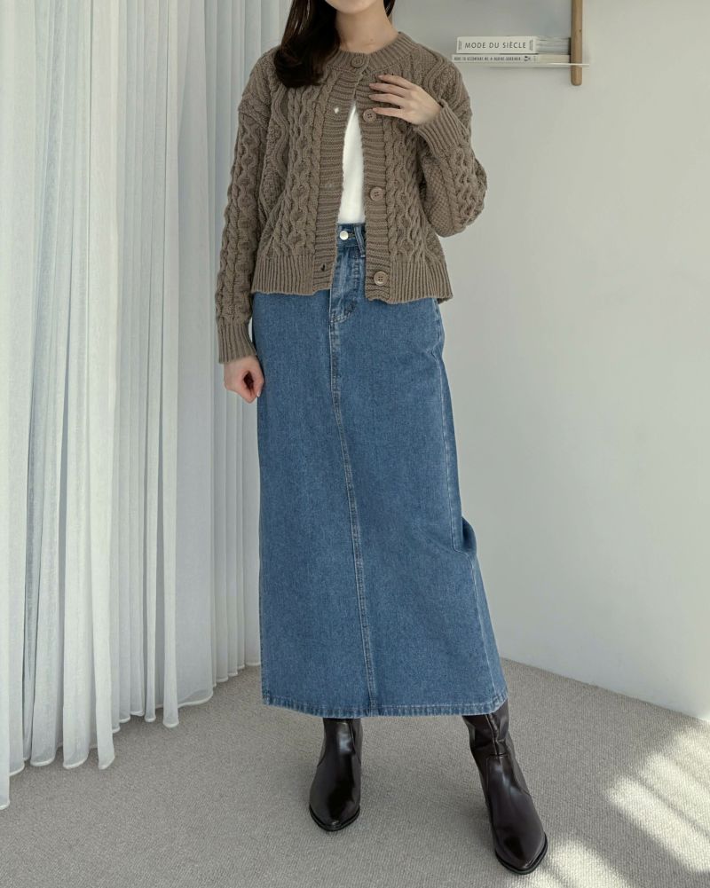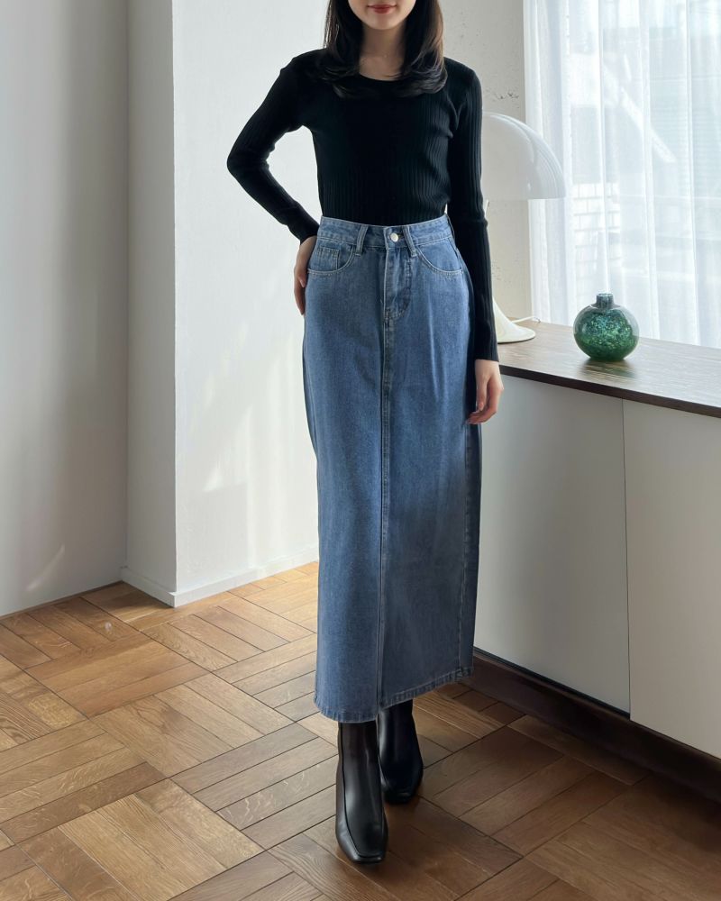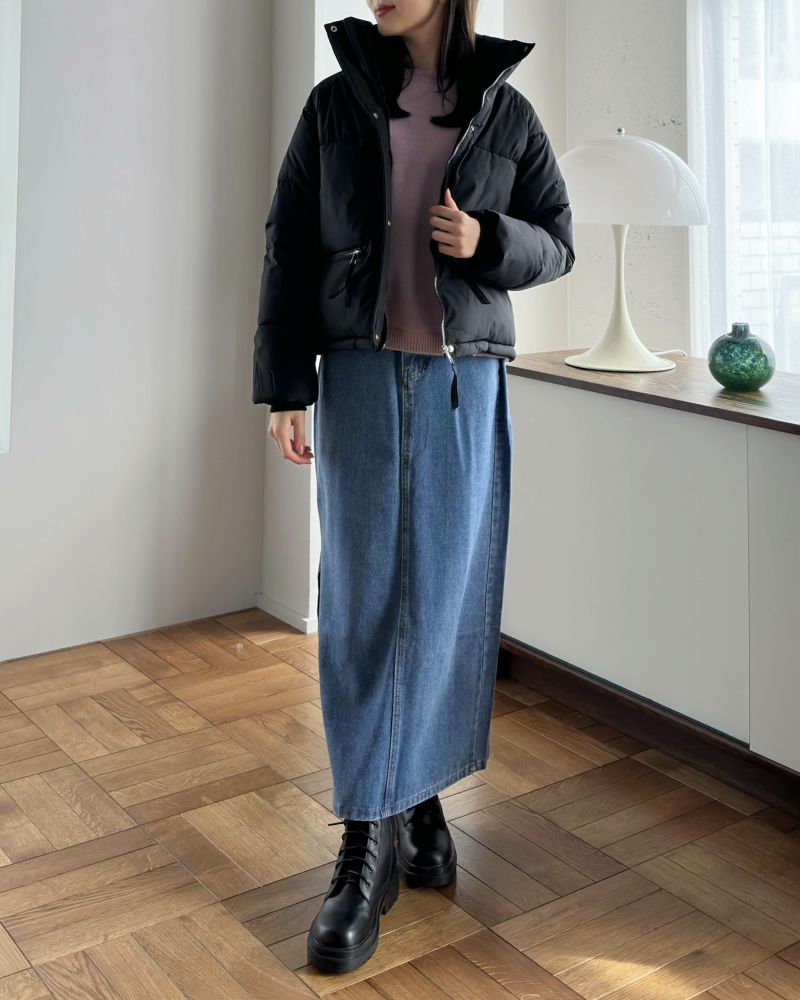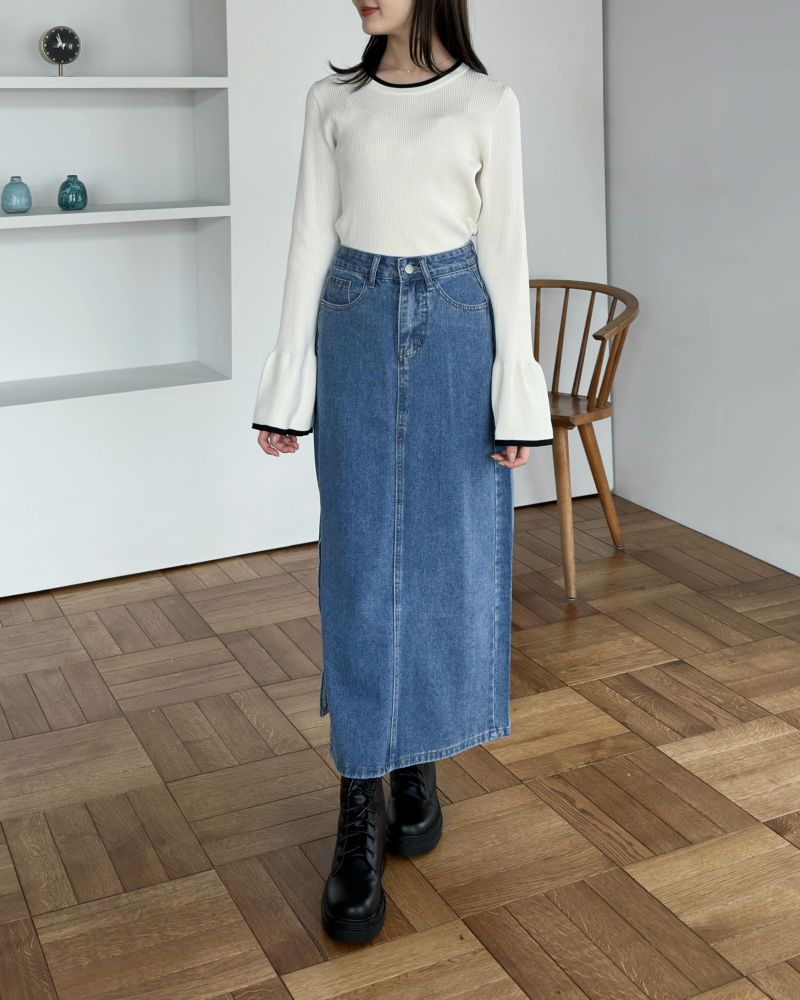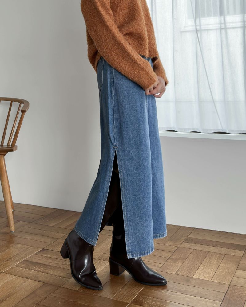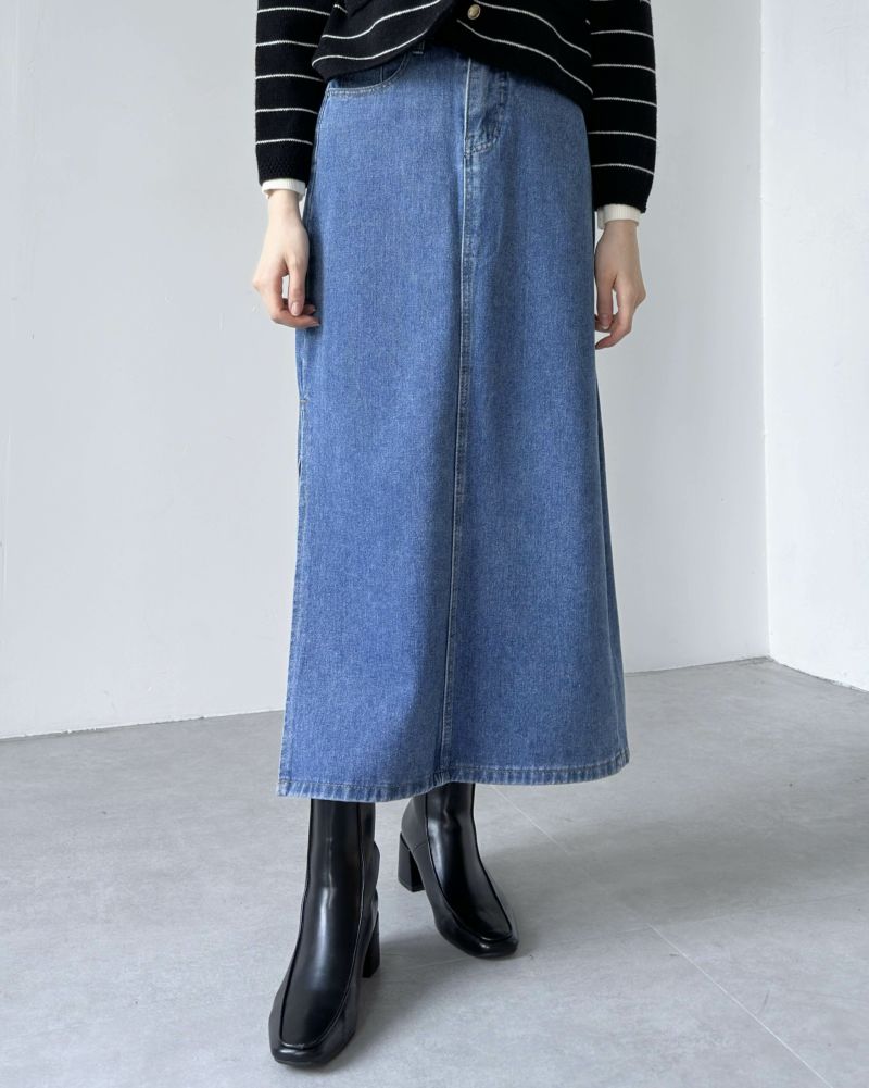 LIVEで言っていた通りワンサイズ上げて購入して正解でした。サイドスリットの深さやストレッチが無いからこそのシルエットの綺麗さに購入して良かったと思いました。