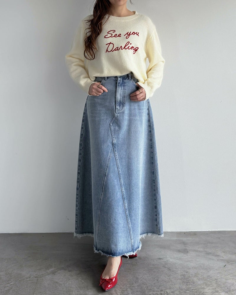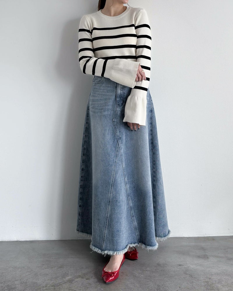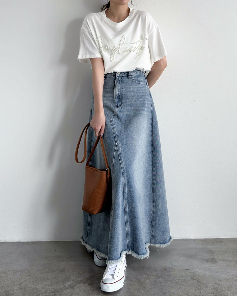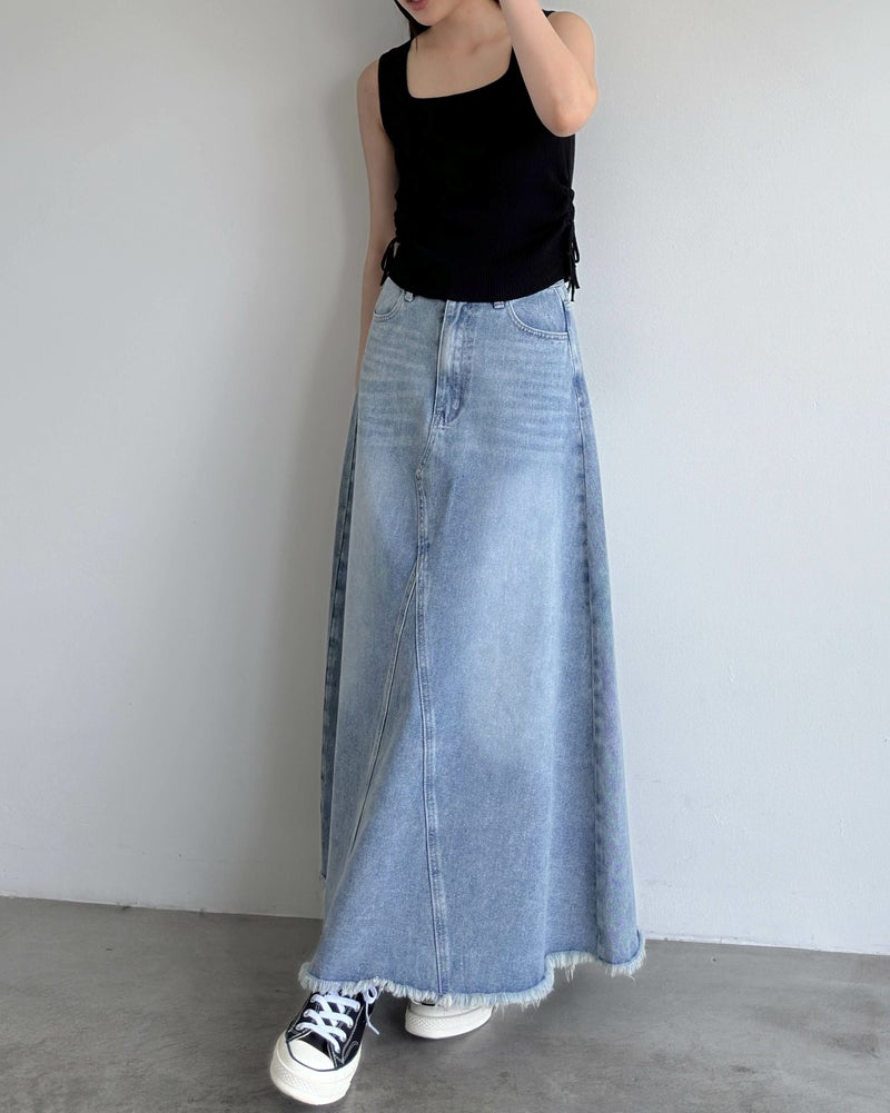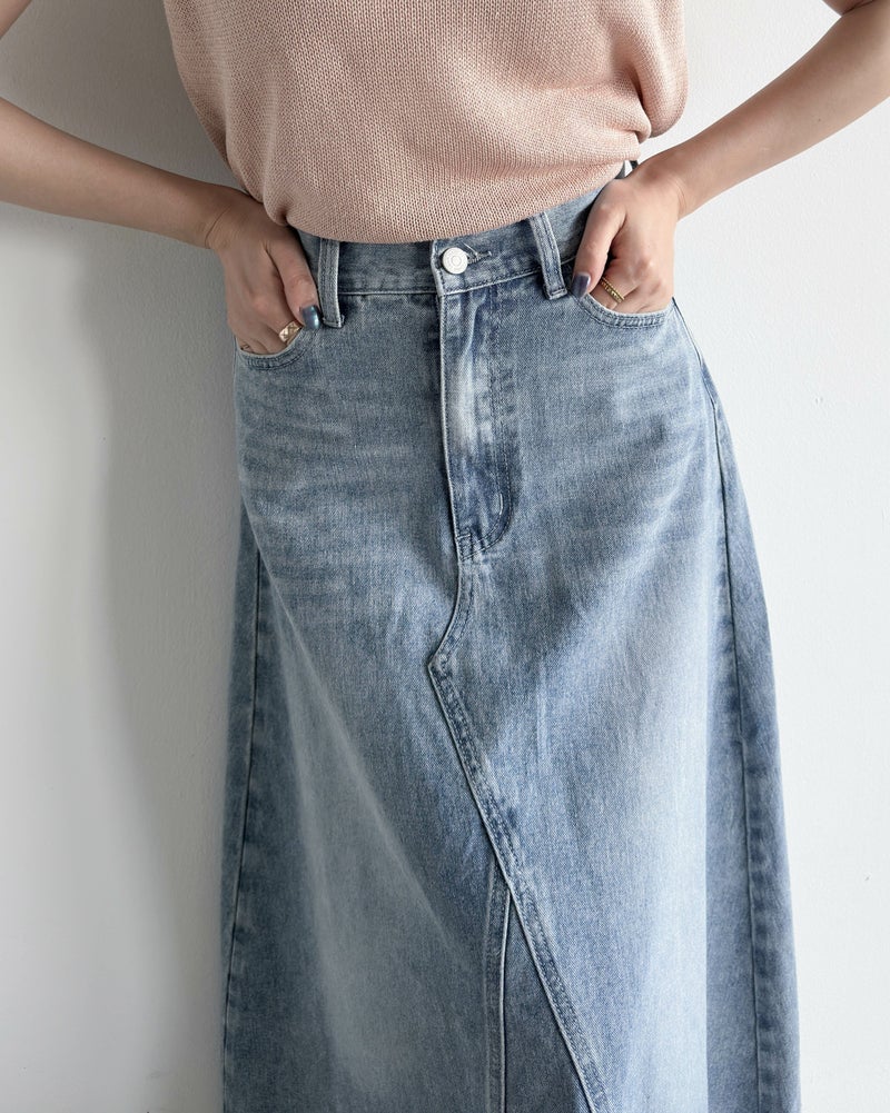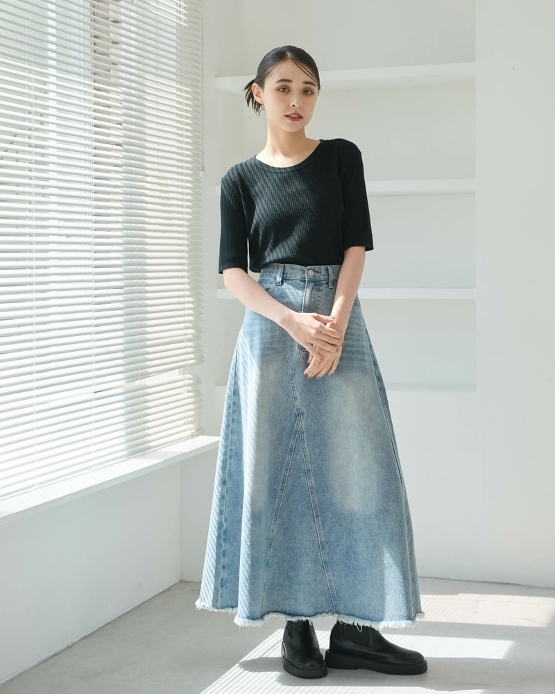 ヴィンテージ加工デニムフレアスカート