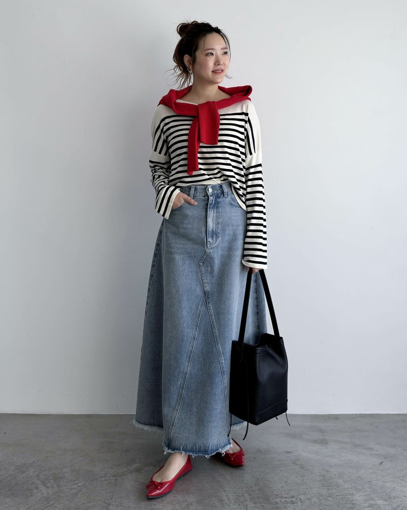 サイズ表を見てウエストゎS、丈ゎM。でも腰の位置が低いのとヒップが薄いので悩んでS購入!結果正解でした✨インする余裕もあり心配してた丈もマキシ丈で理想通り😊お二人が言ってた通り、同じ身長でも骨格によって違うと実感しました!♡素敵な商品をありがとうございます🥰