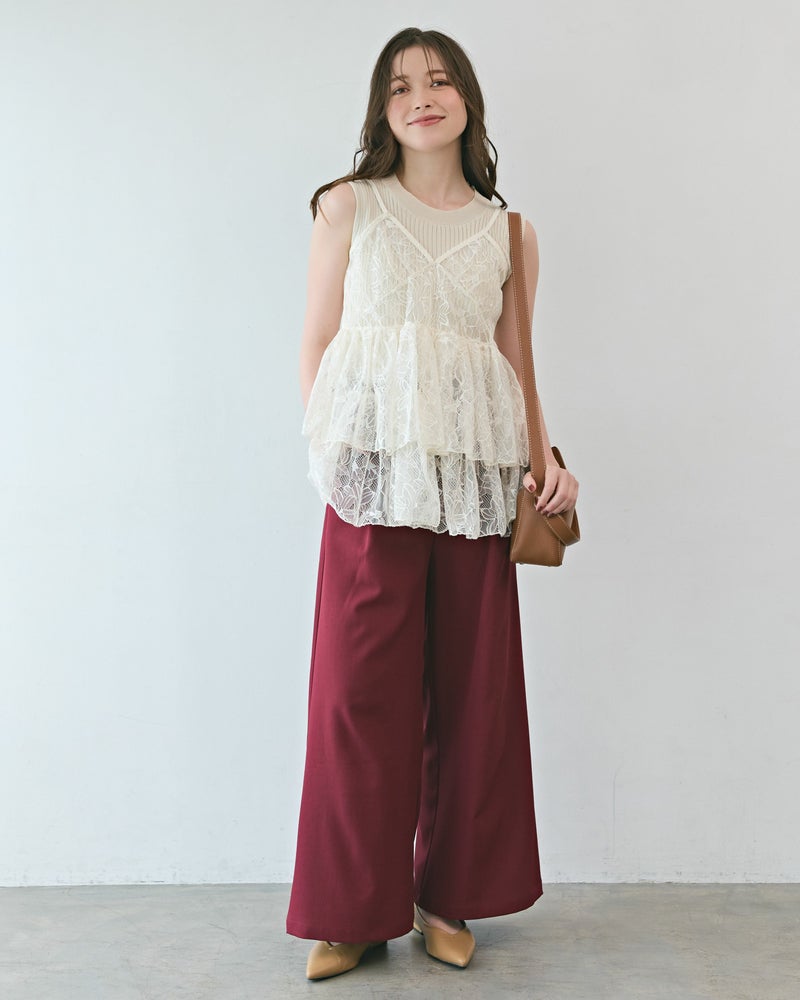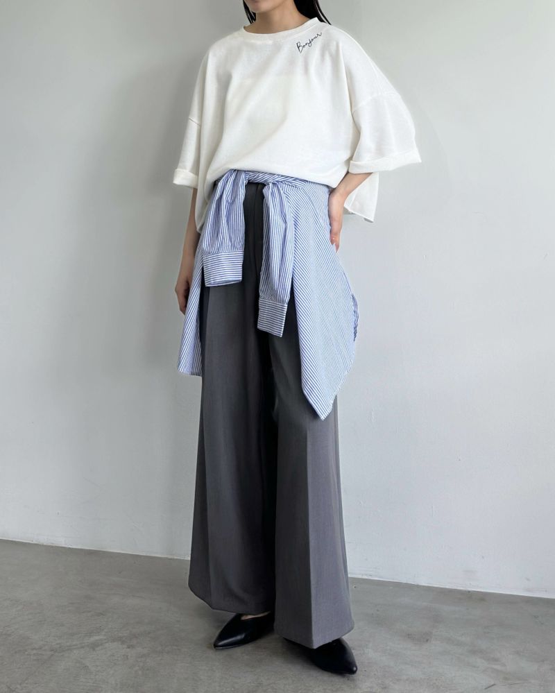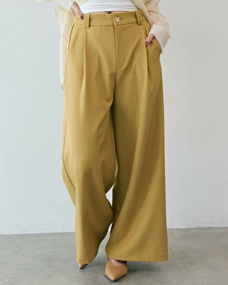 程よいゆとりを持たせたワイドシルエットが、気になる太ももやヒップラインを完璧にカバー。大人の余裕を演出します。