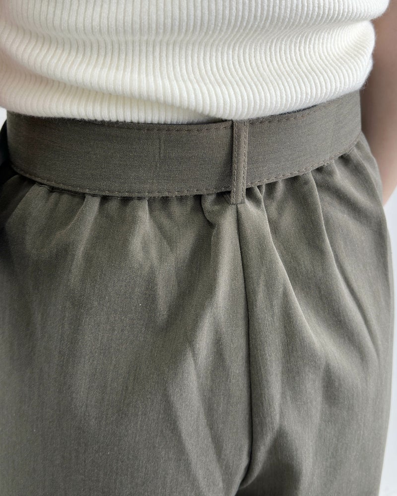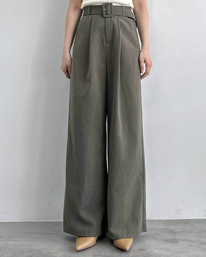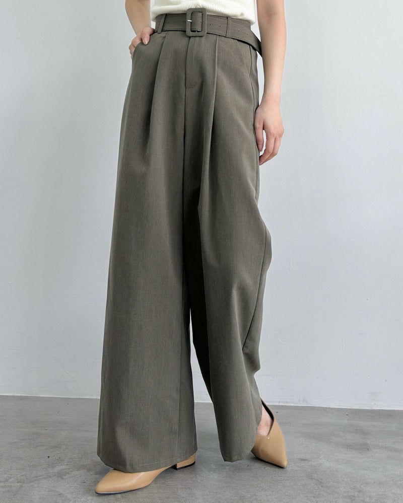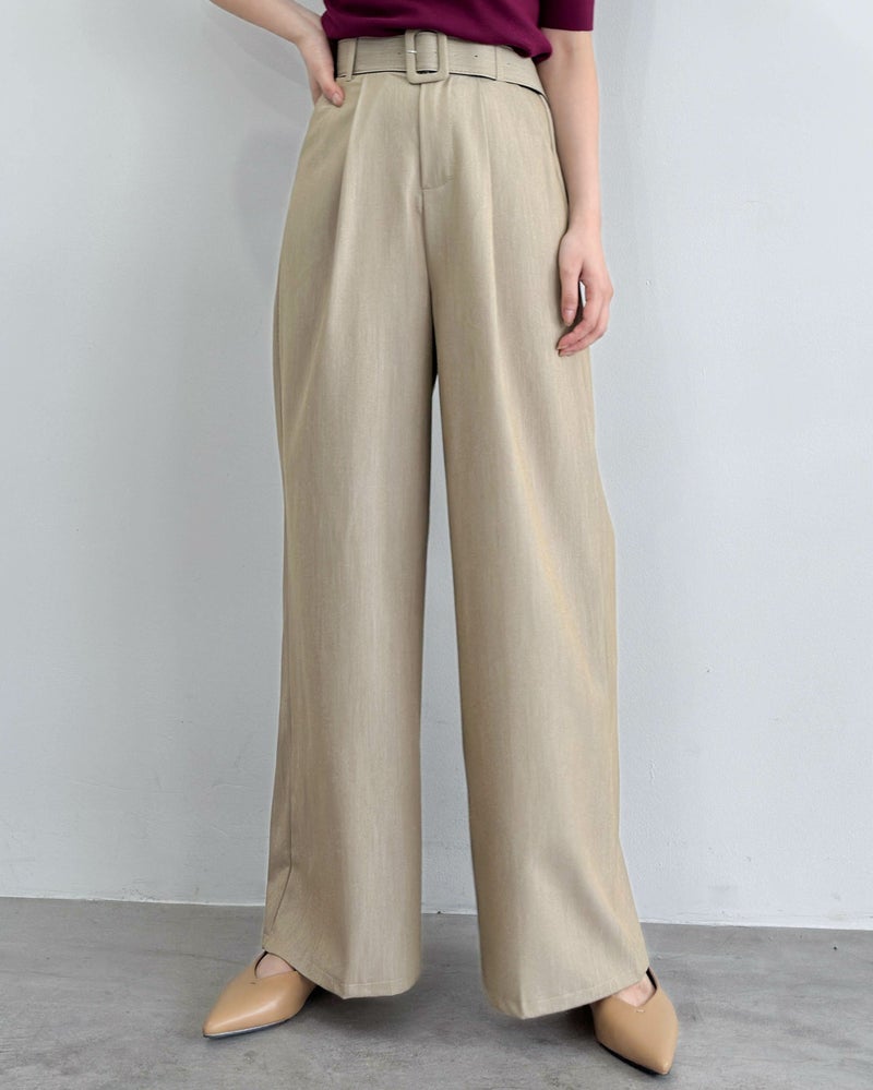 太ベルト付きタックパンツ