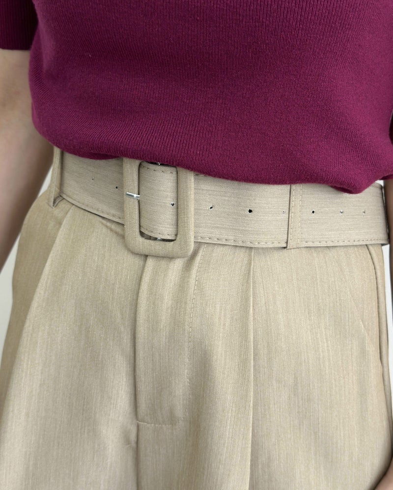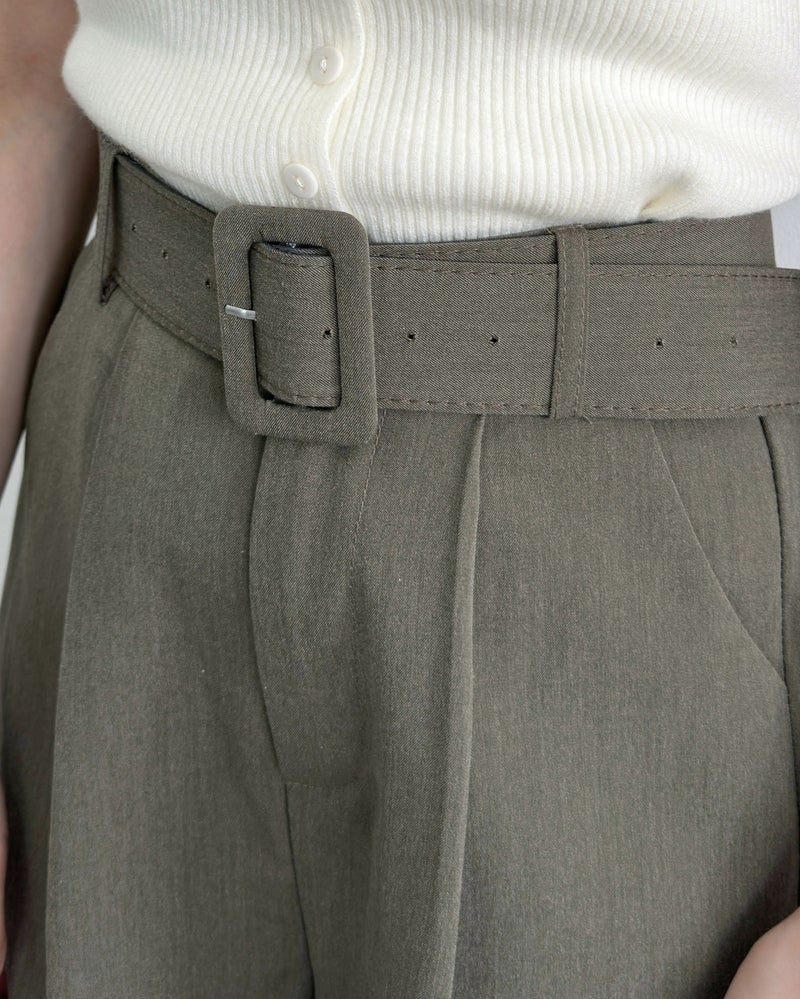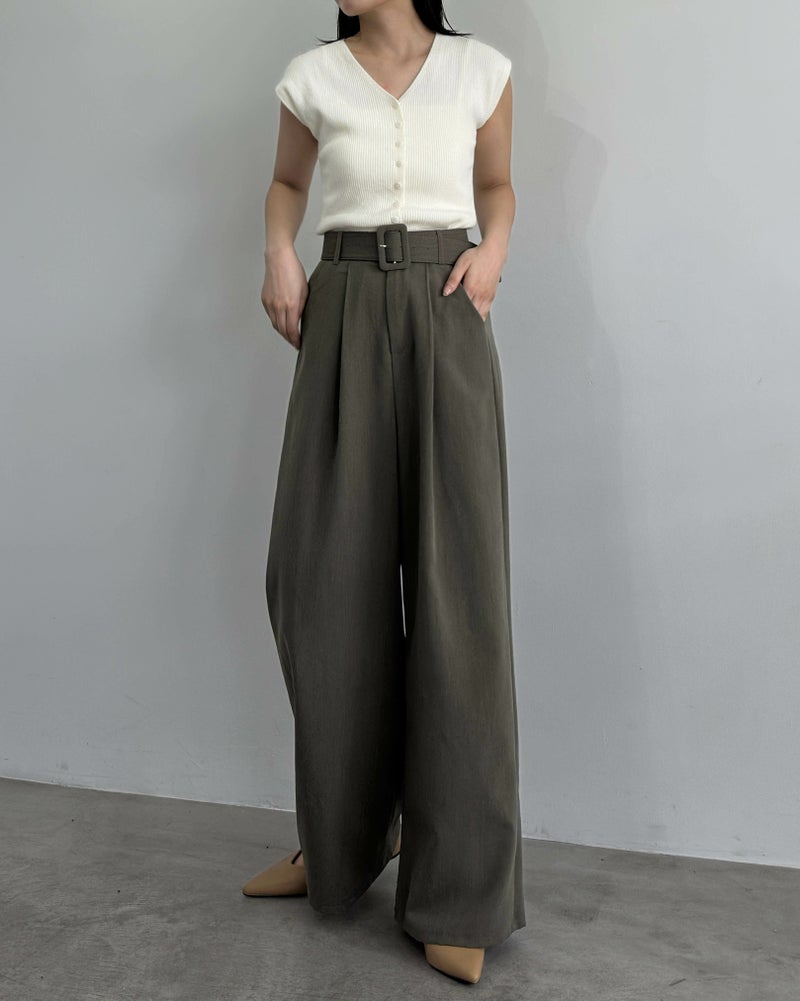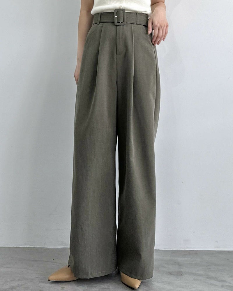 太ベルト付きタックパンツ