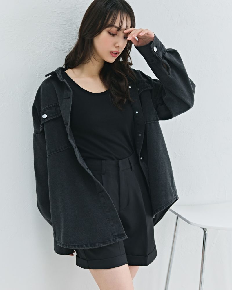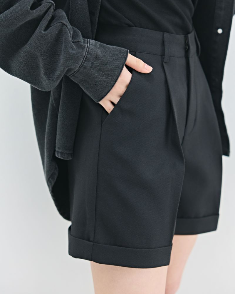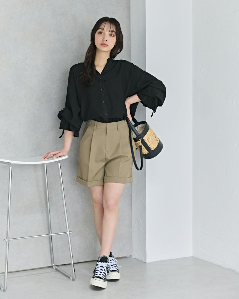 ロールアップデザインタックフレアショートパンツ