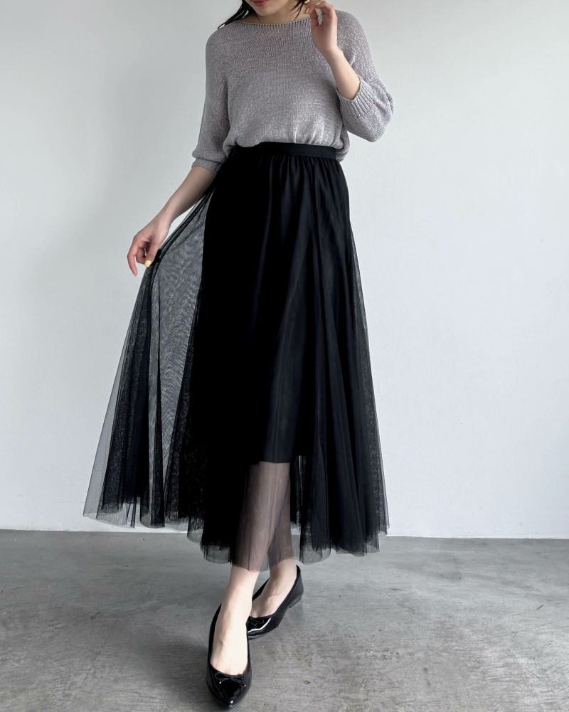 低身長なので長いかな?と思いながらもウエスト総ゴムなので折り返せばいいか?と思い、どうしてもチュールスカートを履いてみたくてホワイト購入しました。 折り返してもウエストが緩く結局落ちてきてしまうので、1回履いただけでたなかちゃんと同じ身長の妹にあげました。 妹にはめちゃくちゃ似合っていて、すごく喜ばれました。