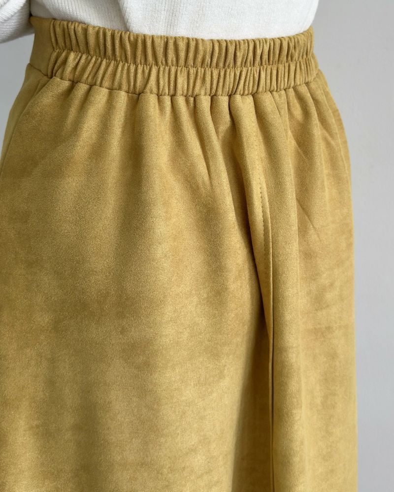 色に悩んでグリーンを購入しました。 色合わせに悩むかな?と不安でしたが、白黒意外に、ベージュやグレーとの相性もバッチリでした! ストンとしたシンプルな生地なので、ボーダーとの合わせもかわいいです❤︎ 何といっても、生地が柔らかくて、1日座り仕事でもウエスト楽ちんでした!