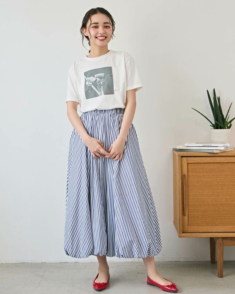 ストライプ柄バブルヘムスカート