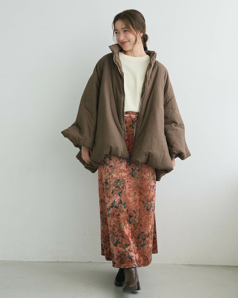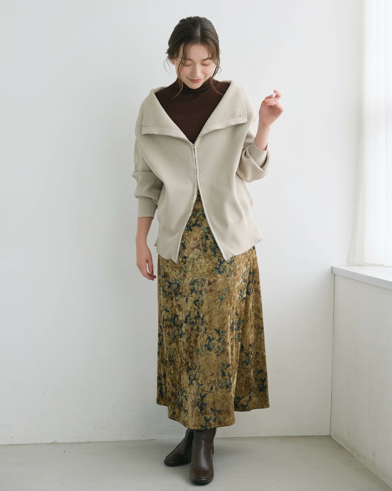 フラワープリントカラーベロアスカート