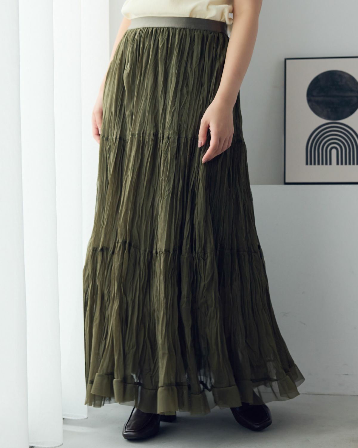 オーガンジーカラーフレアスカート