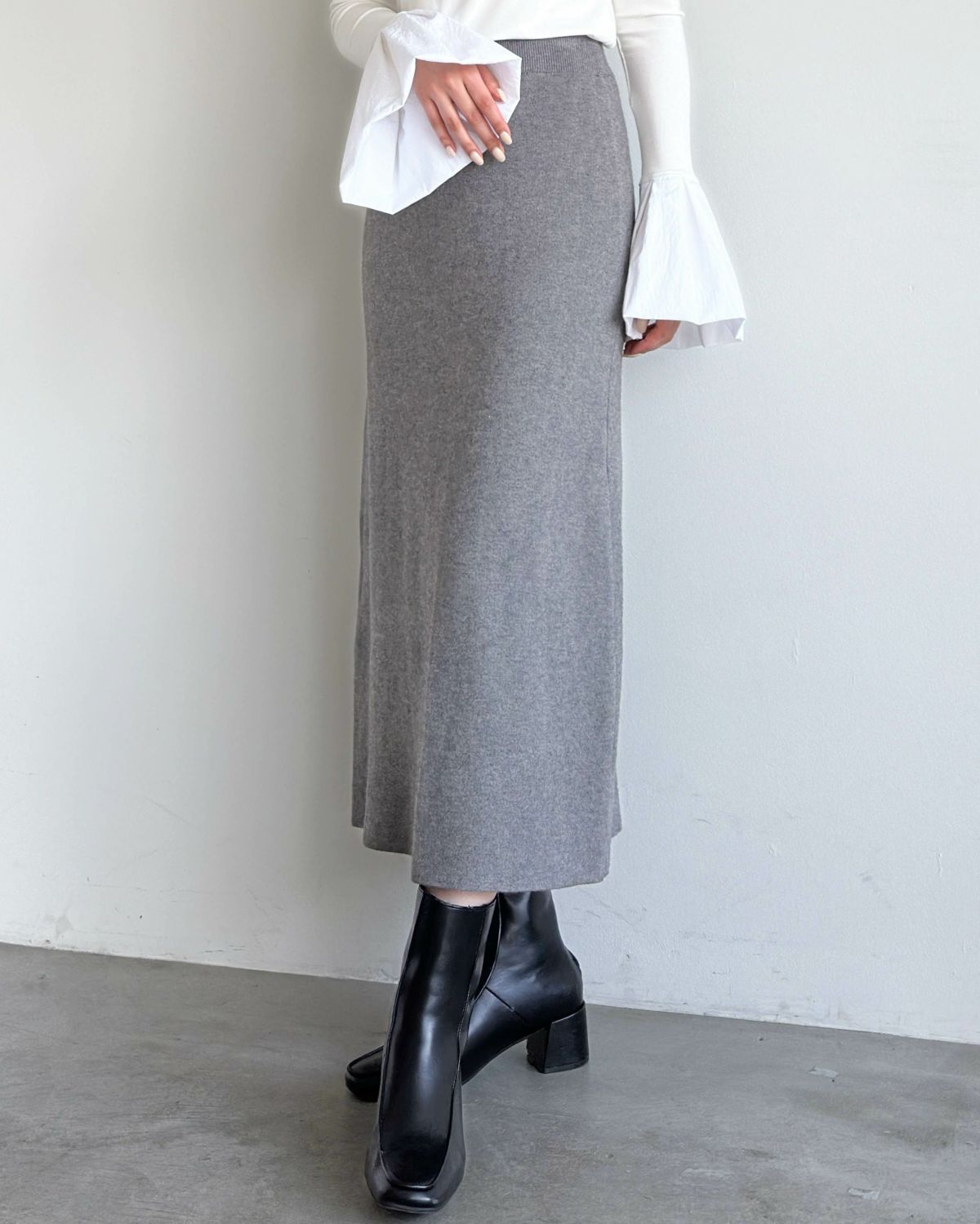 スリットレスセミタイトニットスカート