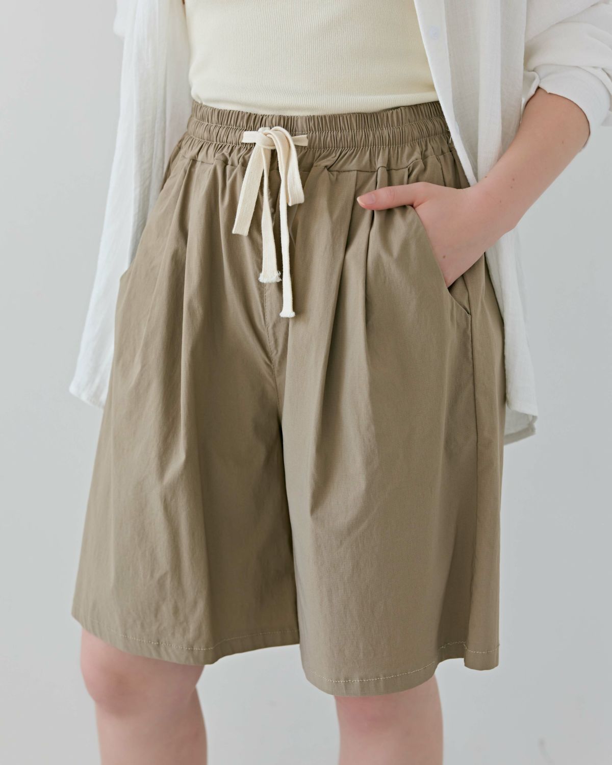 an chic ストレッチナイロンバミューダパンツ