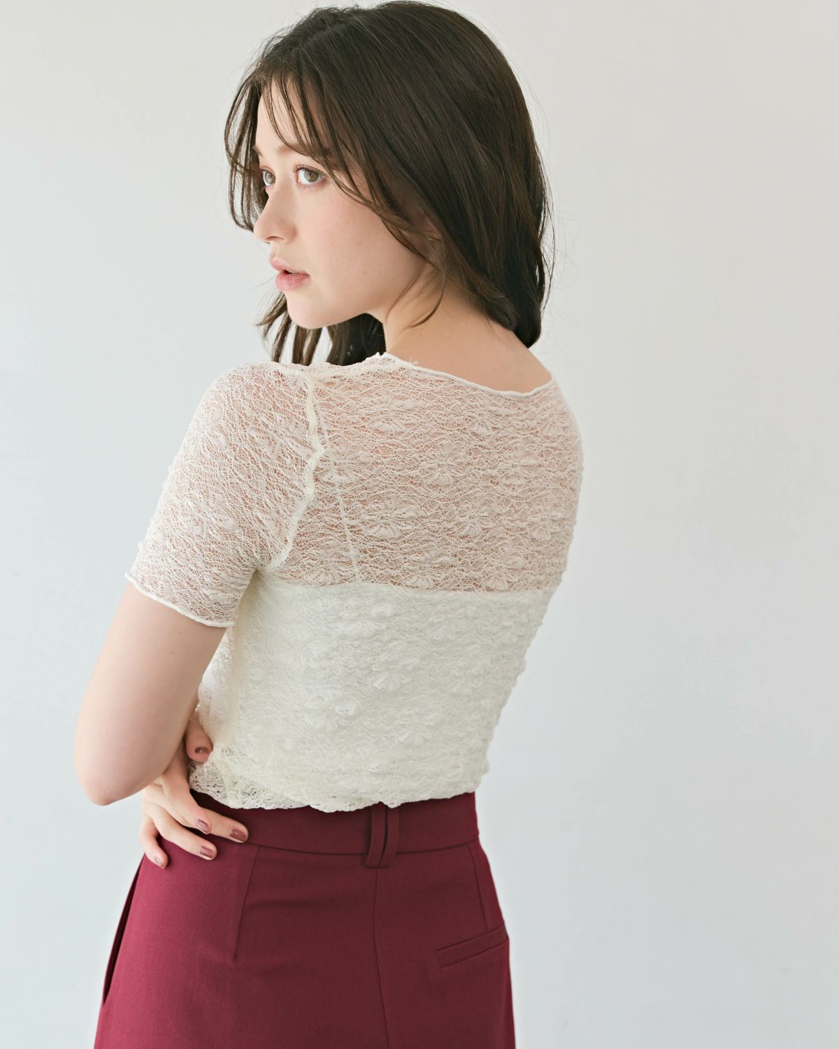 an chic レース半袖カットソー