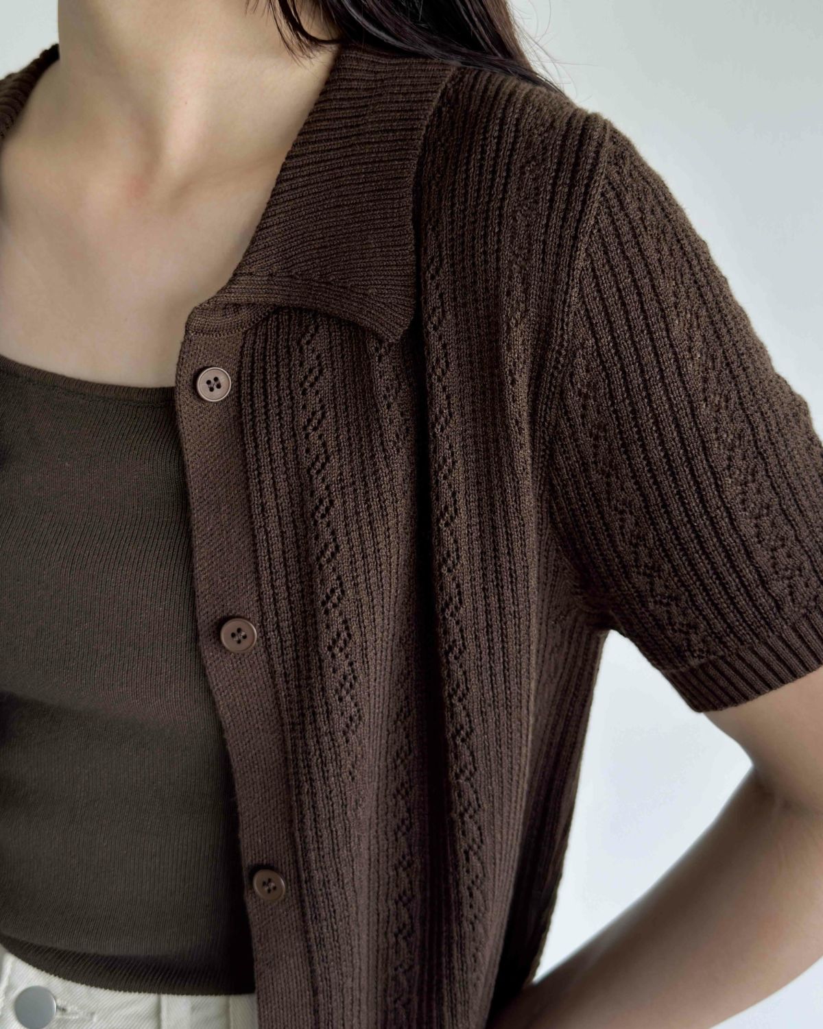 an chic 襟付き半袖ニットカーデ