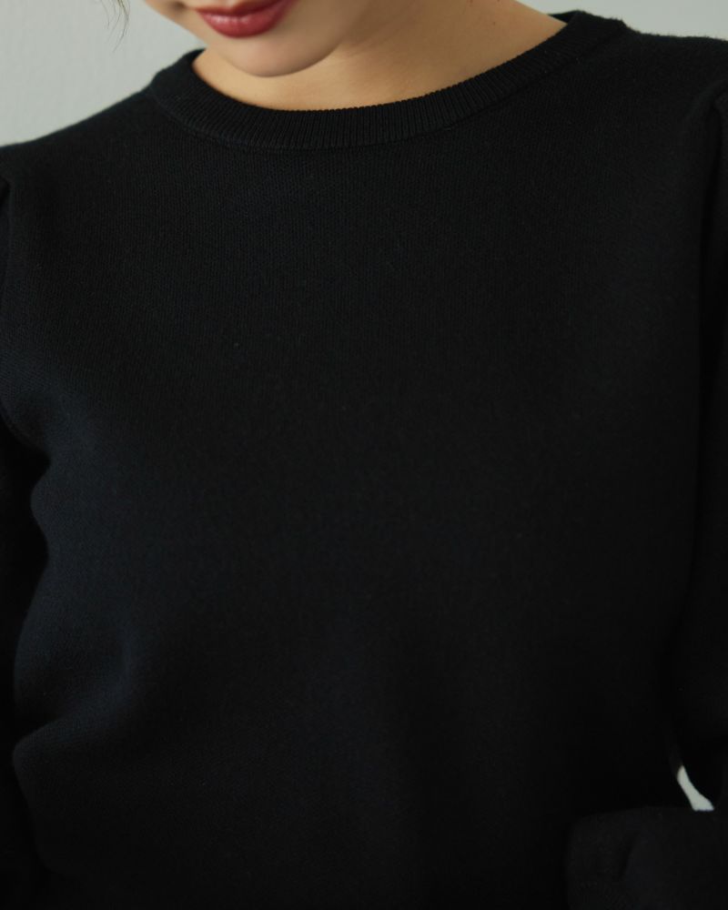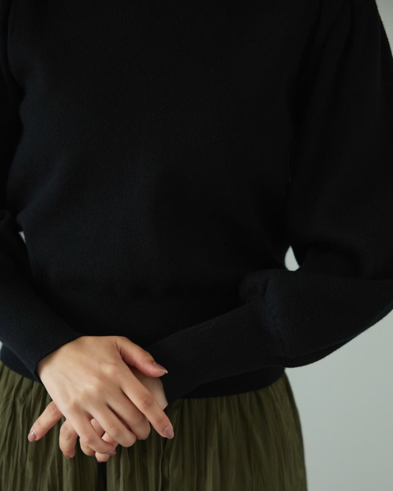 田中ちゃんが言ってた通り、モチモチの生地で、網目も詰まってるから暖かそう。肩幅広めでパフスリーブ苦手でしたが、これは着てても気にならなかったです。