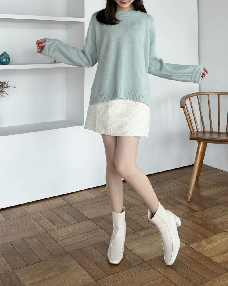 アイボリーかな?厚みのある温かいニットです。厚みがありますが、硬いニットではなく柔らかいです。中に着込まなくてもいい感じです。おしりも隠れるのでニットスカートを履いてもラインを気にしなくてもいいのはうれしいです。形はシンプルなので何にでも合わせやすいと思います。買ってよかったです。他のカラーが再販されたらまた購入したいです。
