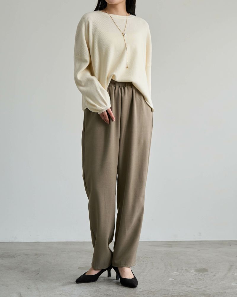 太もも周りはゆったり、足首に向かって細くなるテーパードラインが、気になるレッグラインを美しくカバー。
