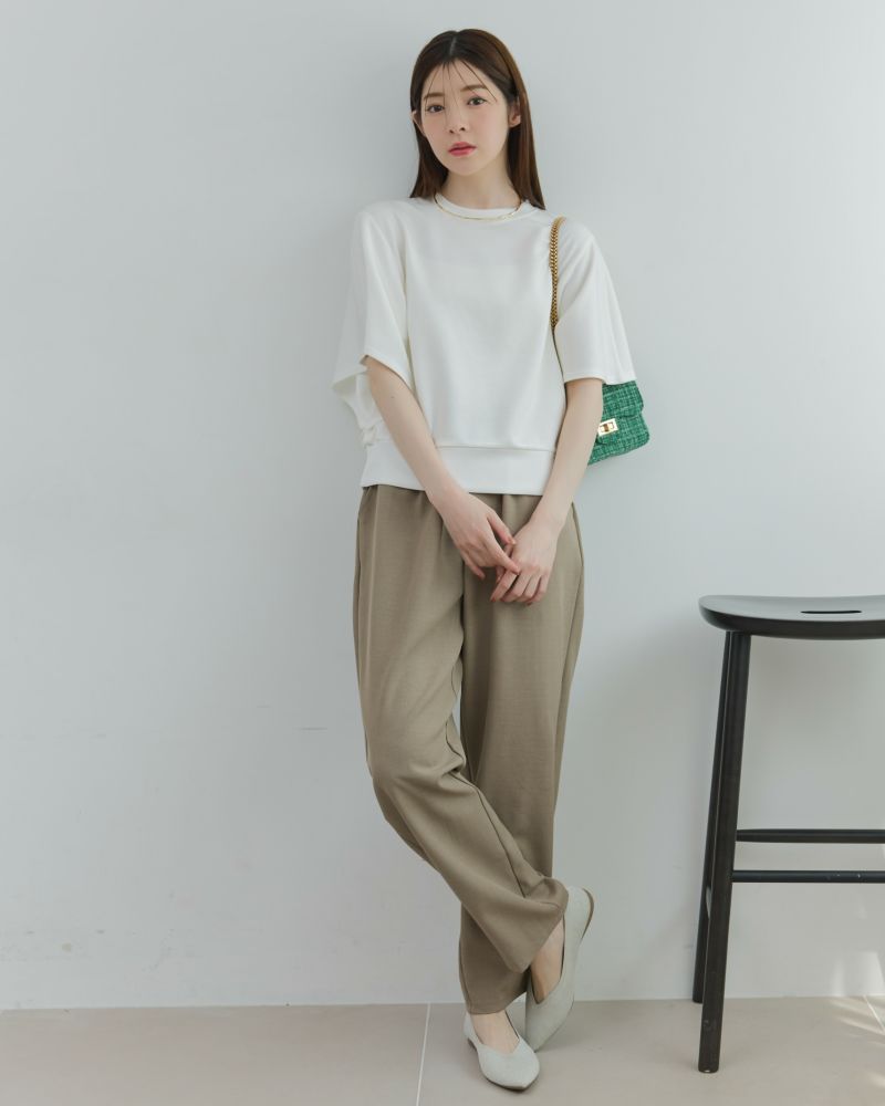きれいめな素材で、カジュアルだけでなく通勤やオフィスカジュアルにも対応。ON/OFF問わず着回せます。