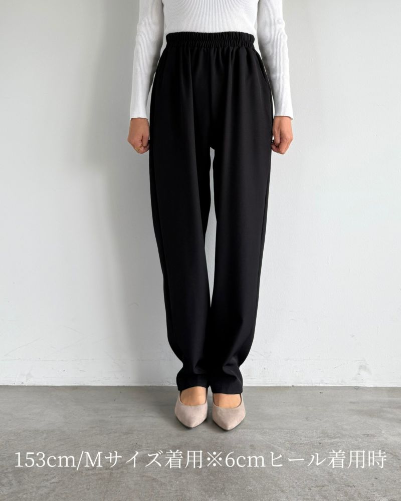 身長157.8センチ普段M.Lブラックとオフホワイト購入 この布地のクオリティーで2900円ポケット付きとは驚き 他店で購入したバンドカラーでウエストから裾に向かって広がるブラウスに単丈のベストとこのパンツ合わせると初めていい感じに。 総ゴムな為丈調整は自由自在 フォーマルな場にもカジュアルにも これは全世代にお勧め✨正に神パンツ✨です。皺にならずウエスト楽チンで私の母でも着用できそう。