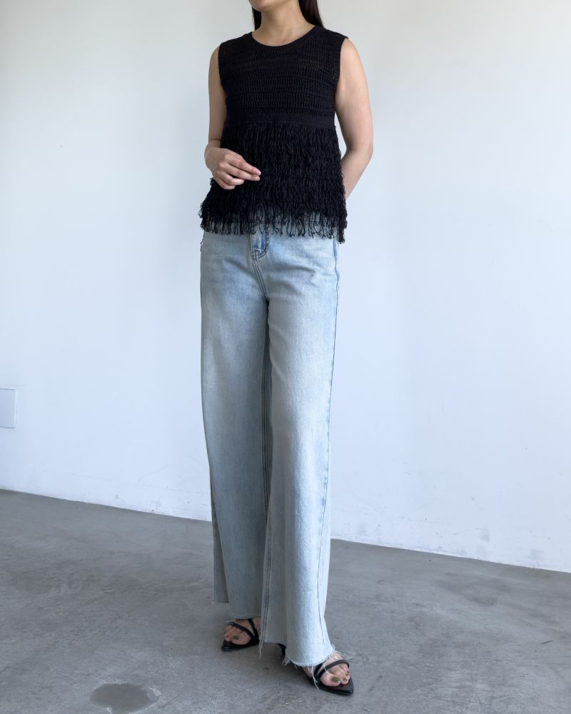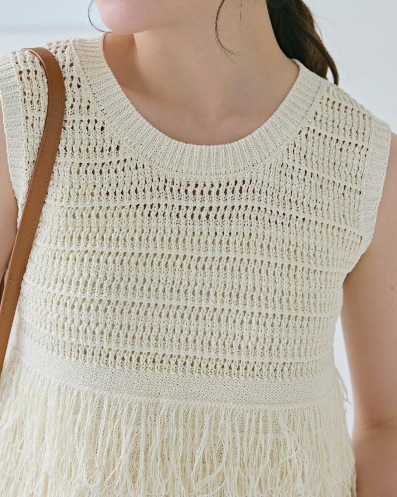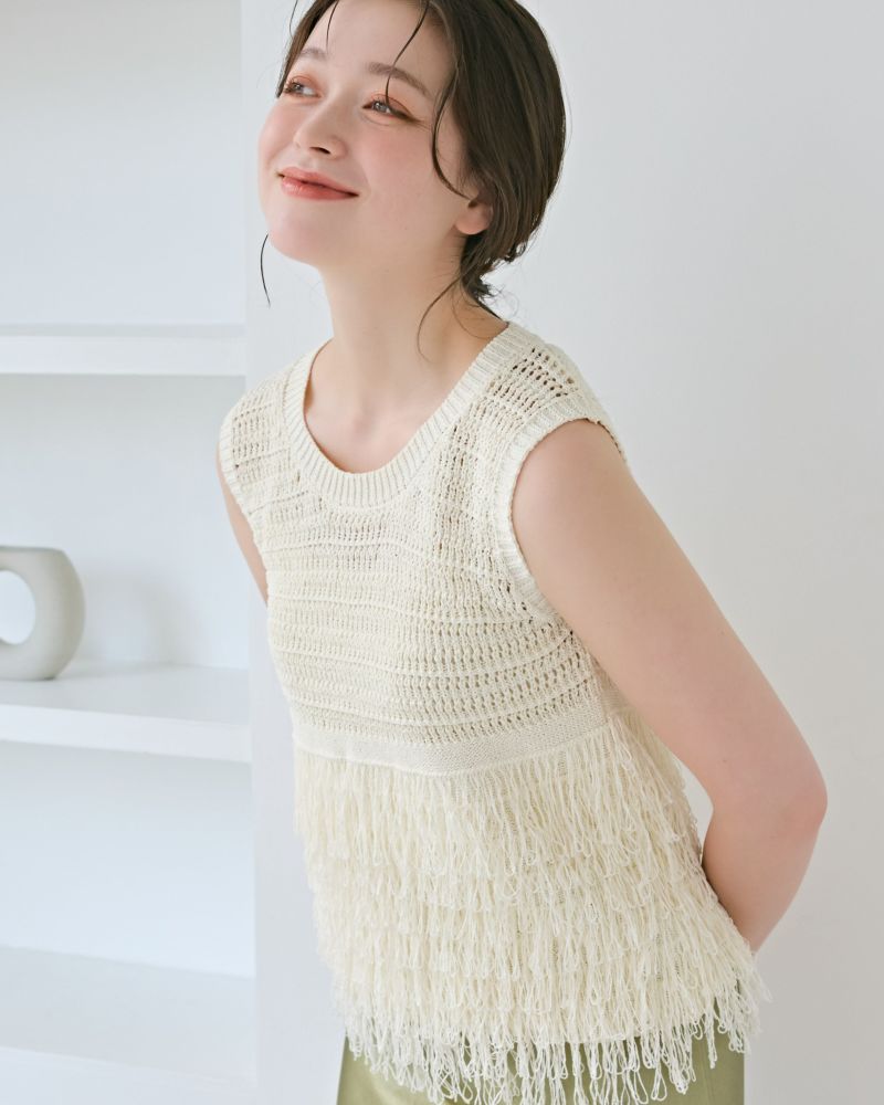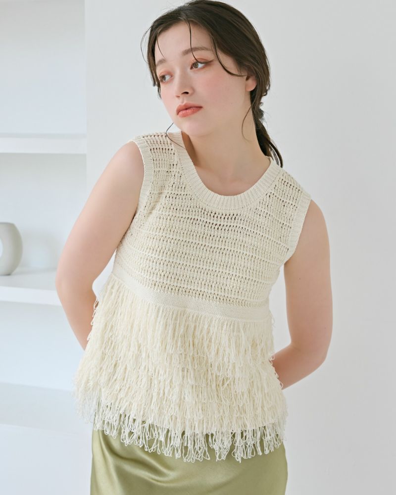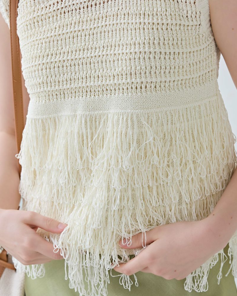 フリンジティアードニットトップス