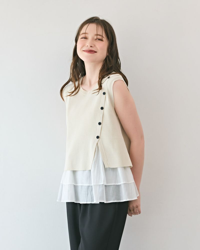 レイヤードキャミ付きポイントボタンニットノースリーブ