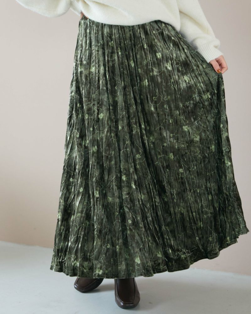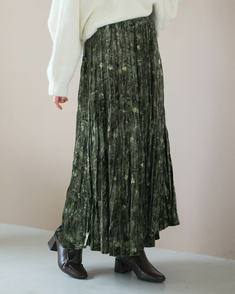 ランダムプリーツミニフラワーベロアスカート