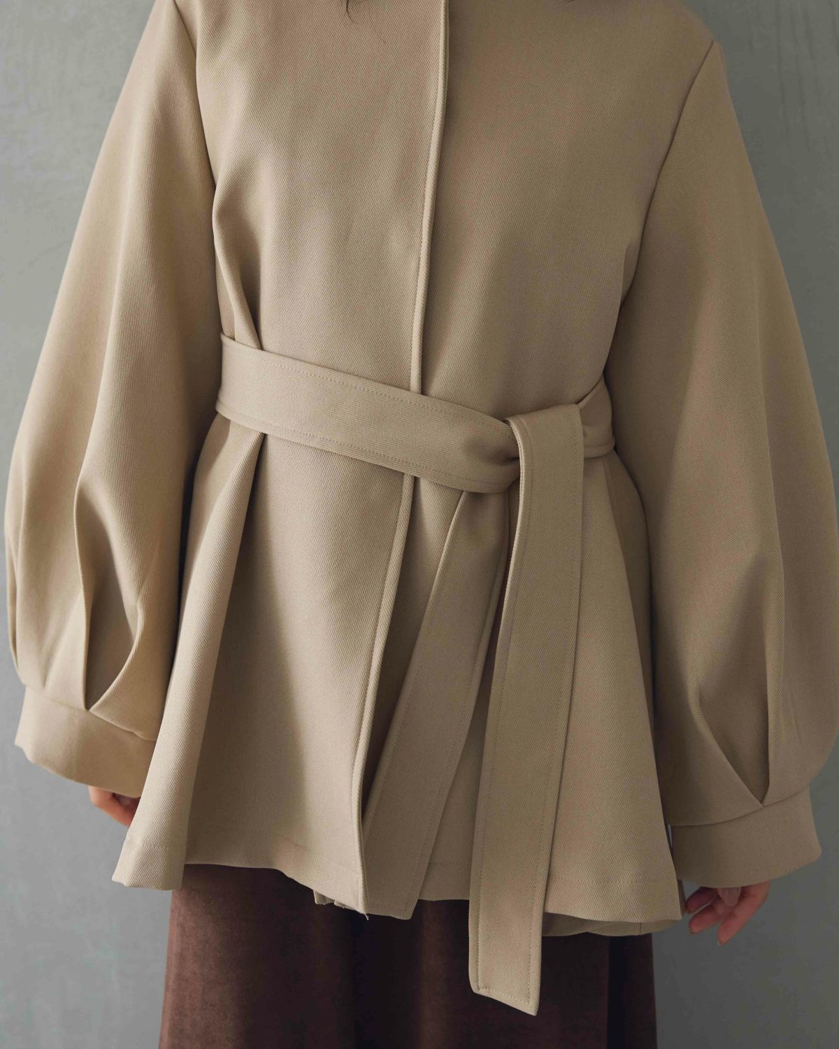 an chic ぽわん袖ノーカラーフレアコート