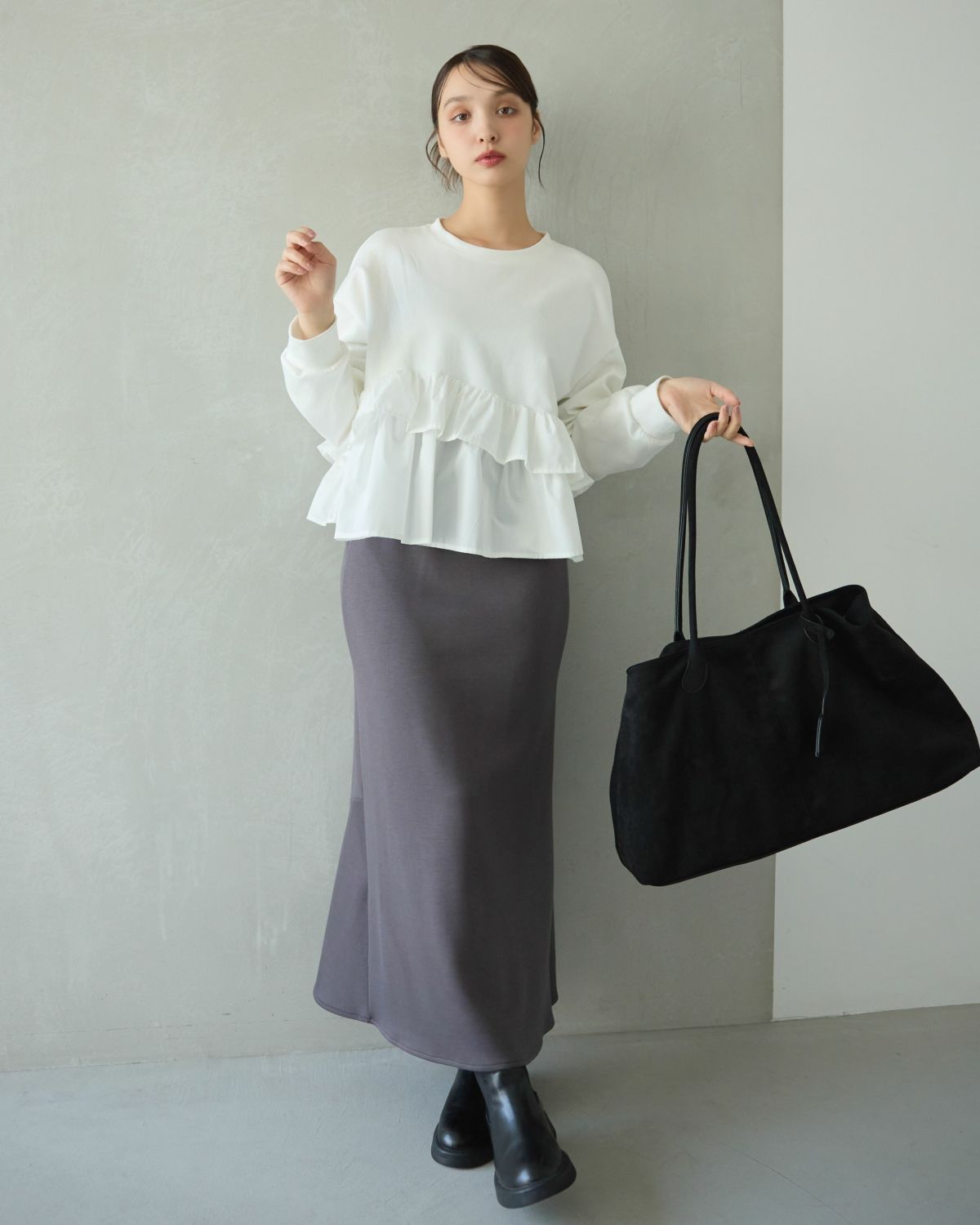 an chic セミフレアスウェードスカート
