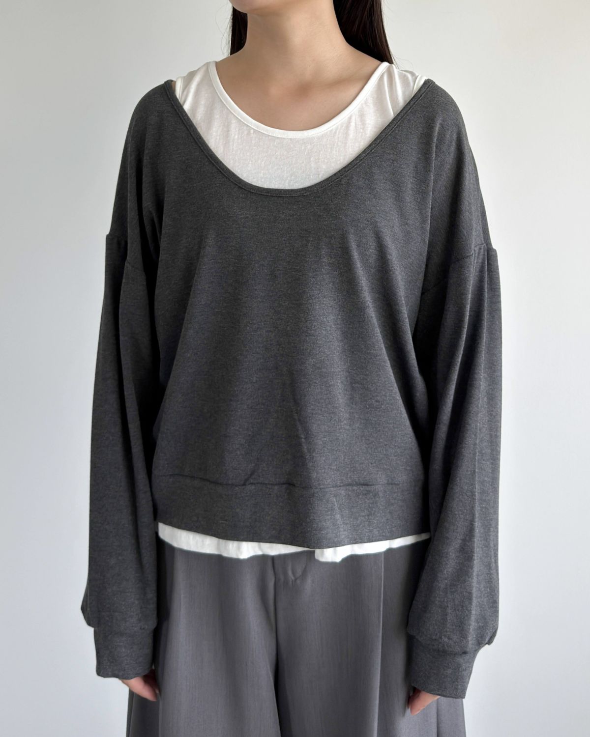 an chic ボートネックウエストタックカットソー
