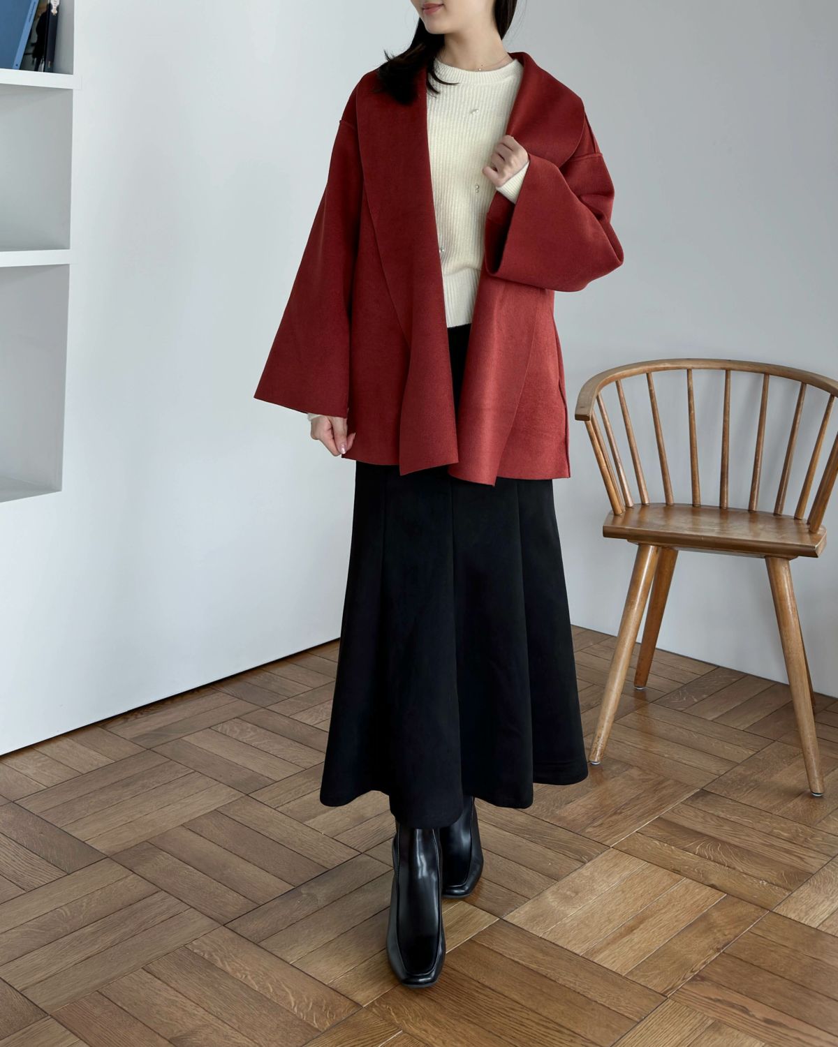 an chic ウール混リバーコート