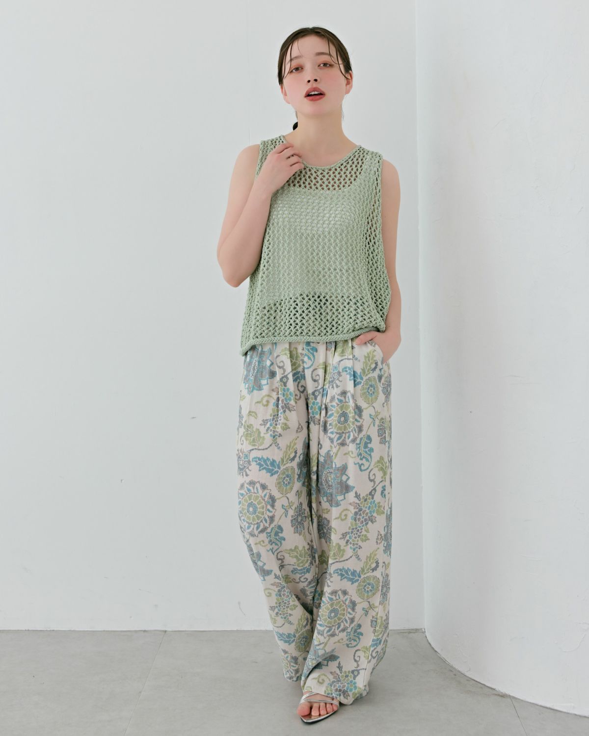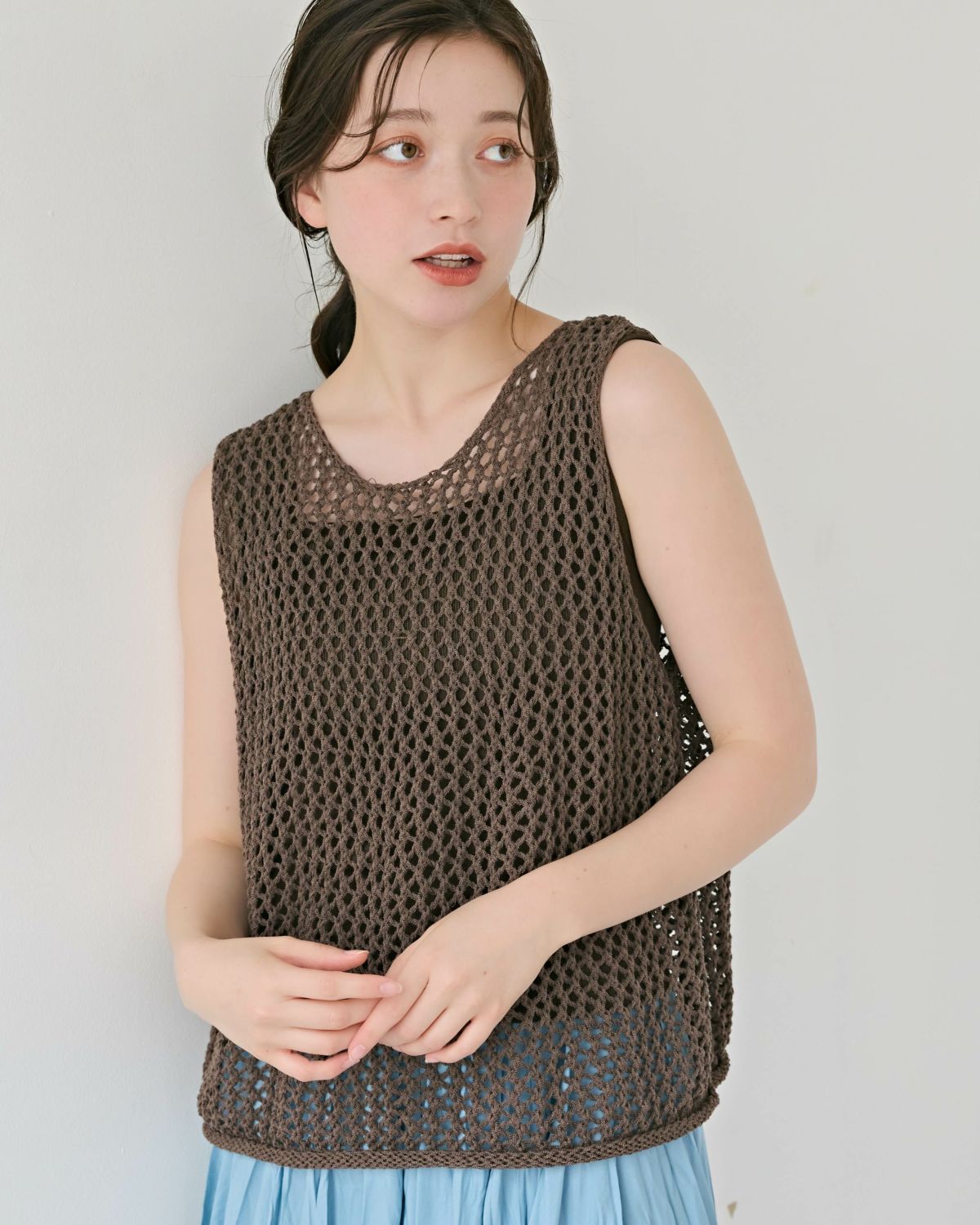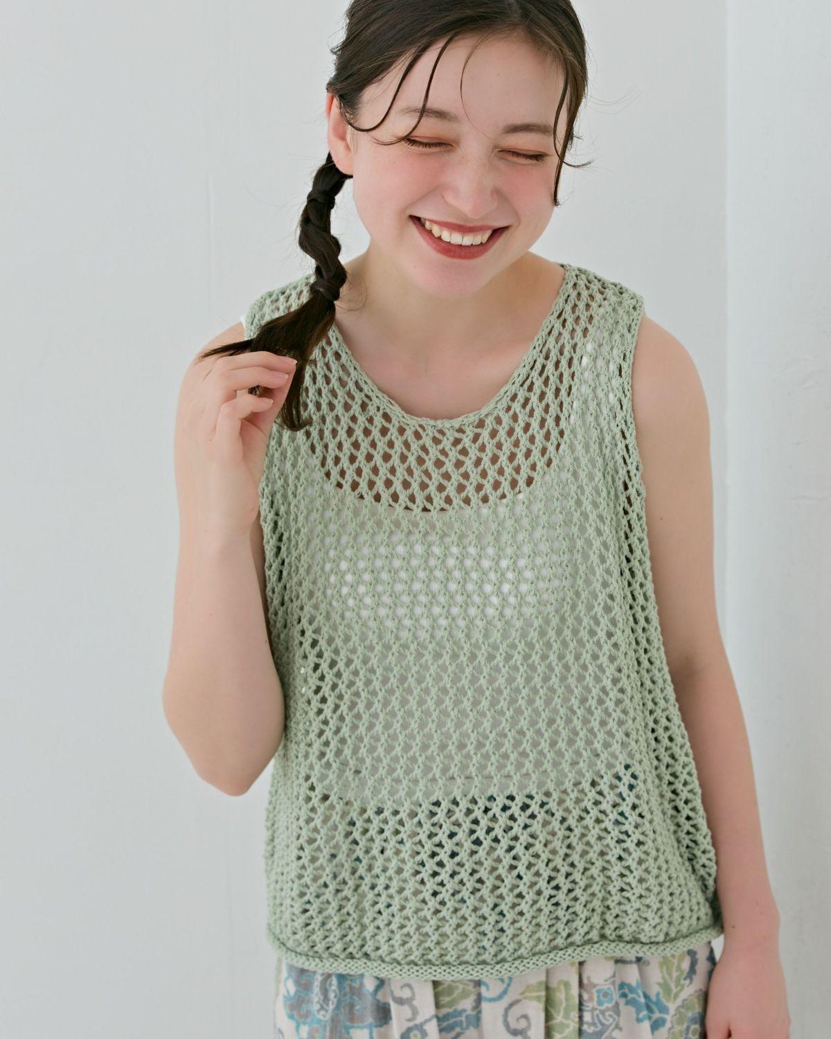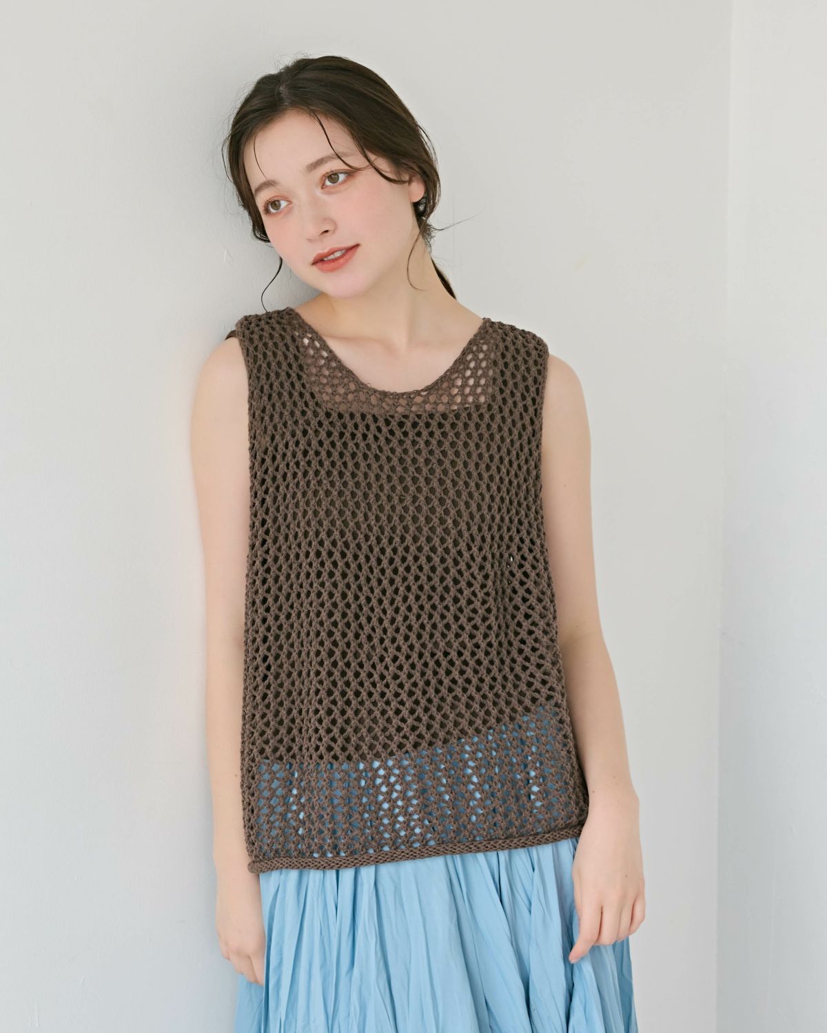 an chic 透かし編みニットタンク