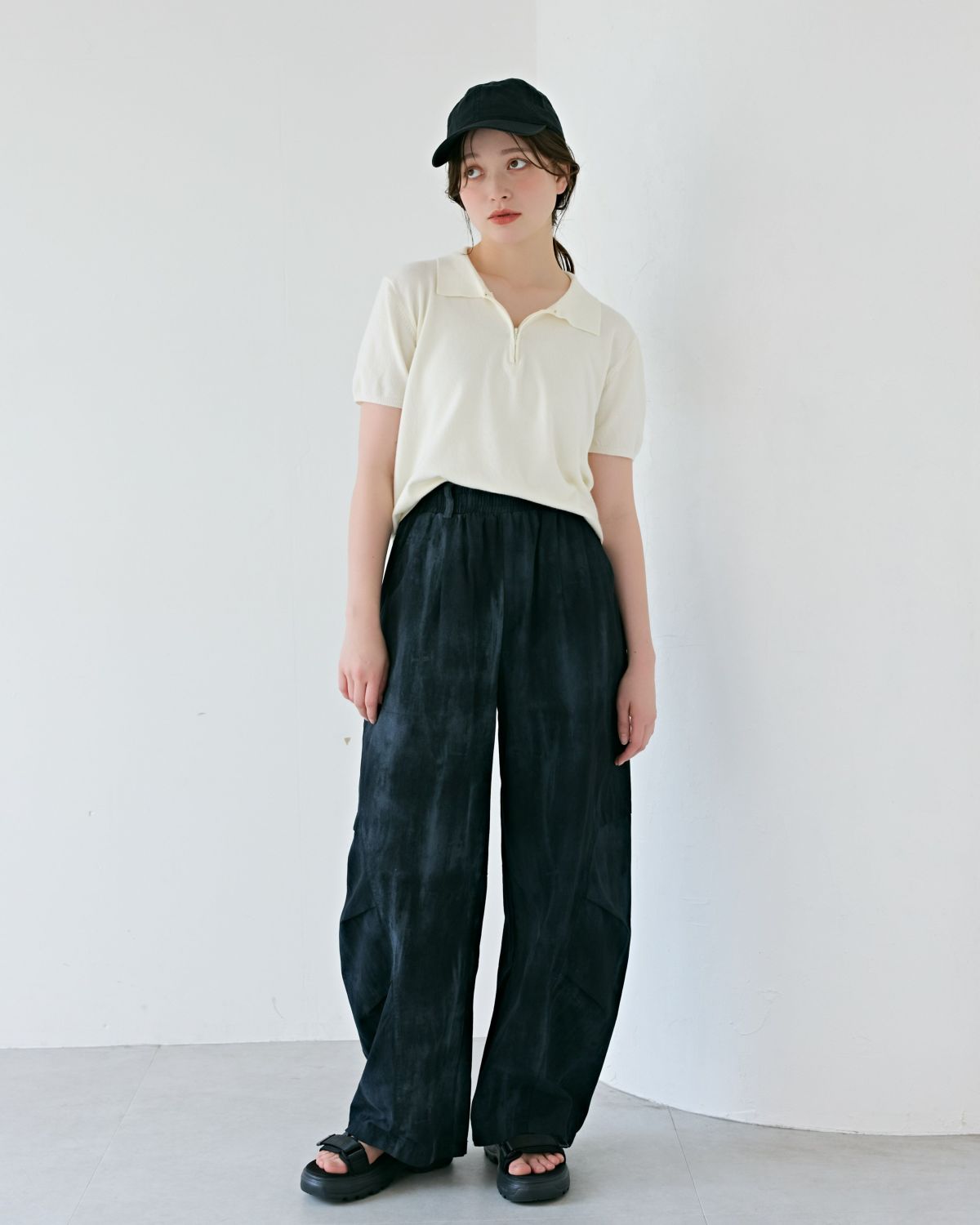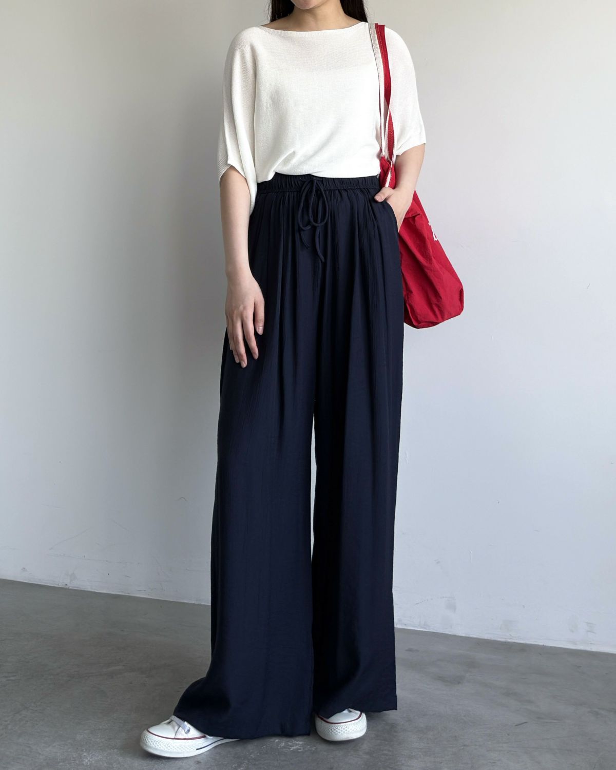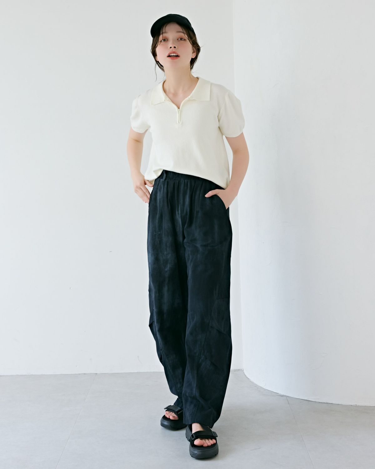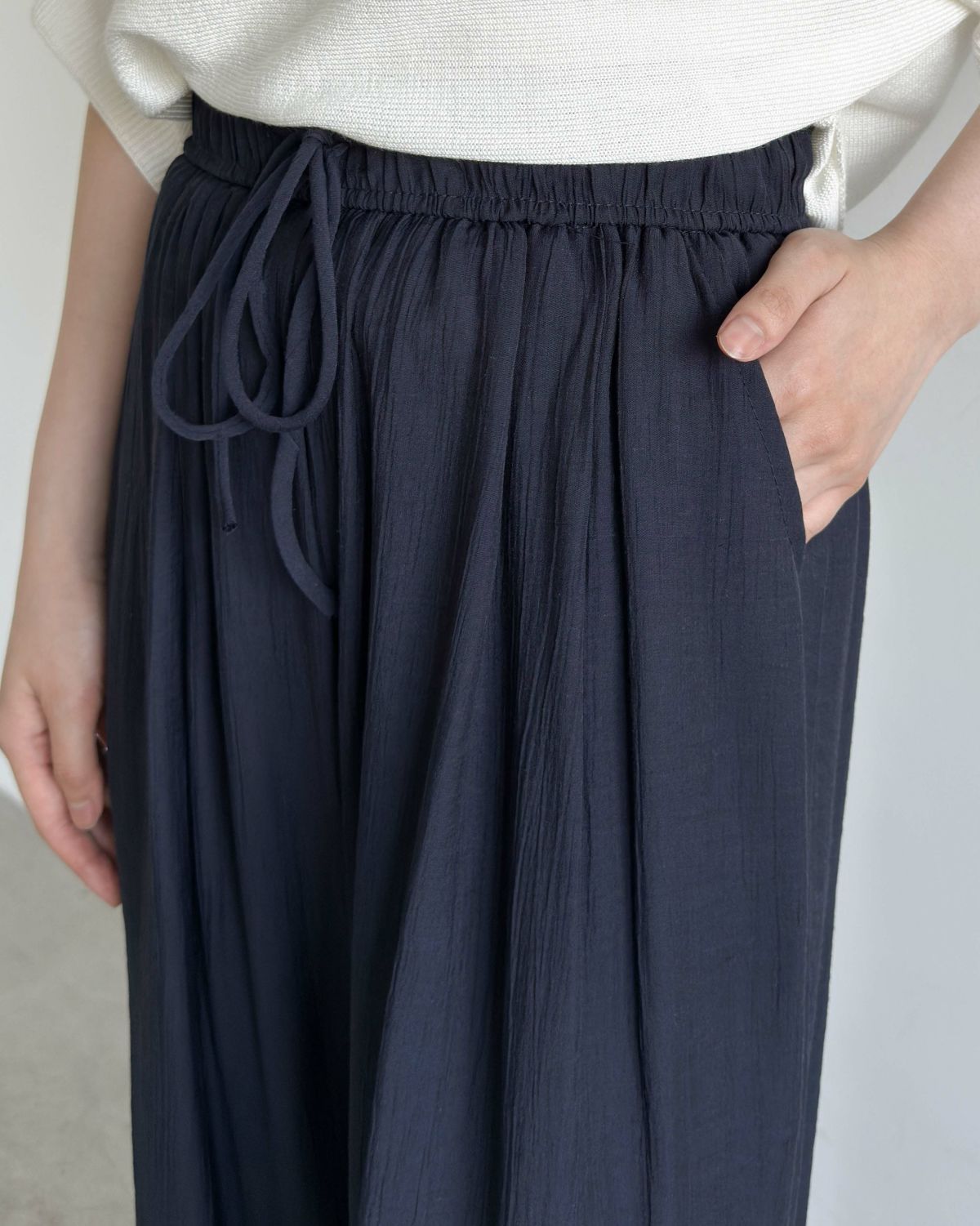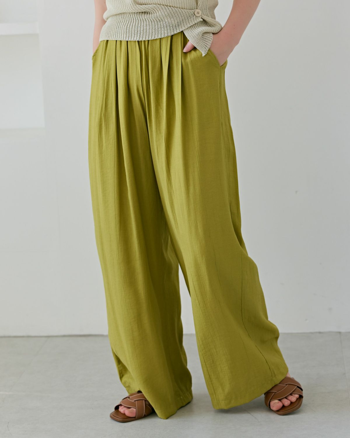 an chic ワッシャー加工イージーパンツ