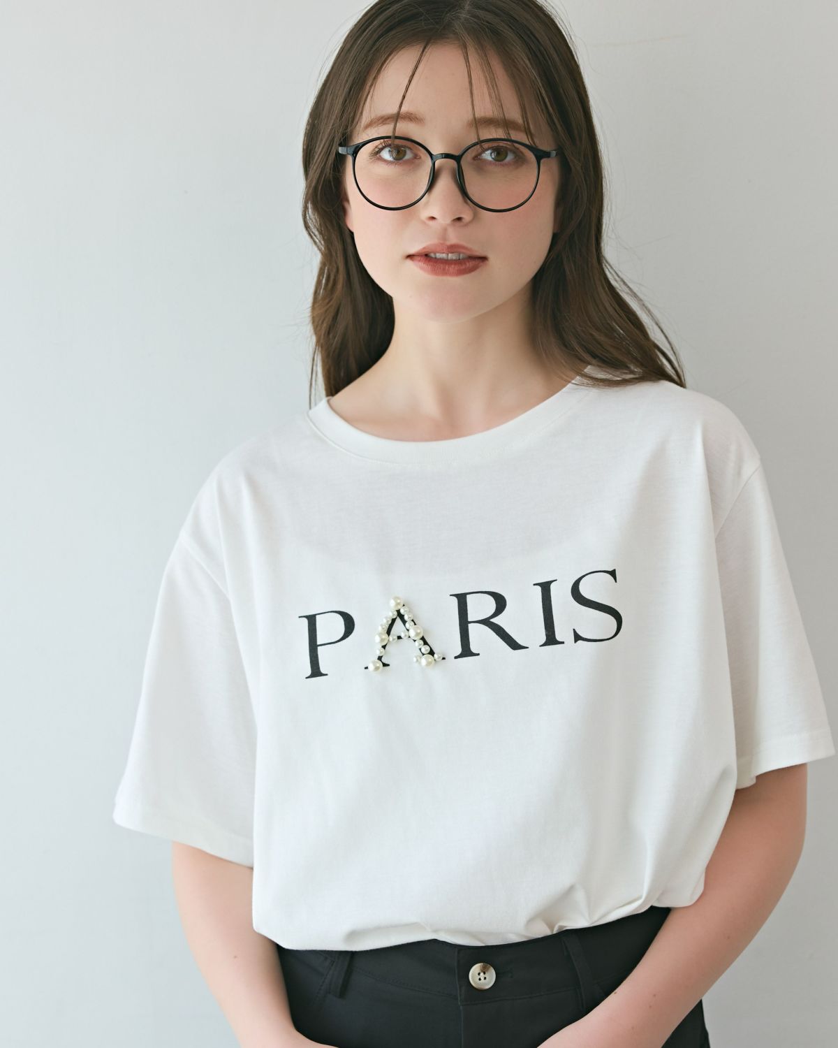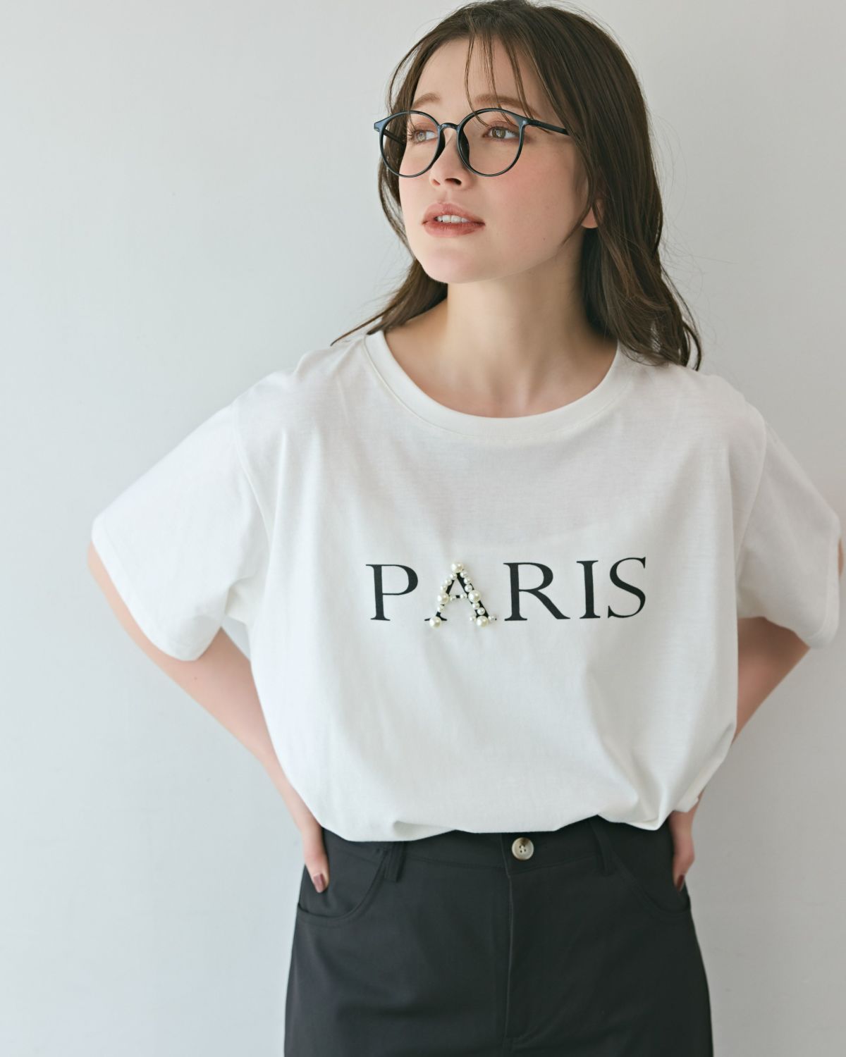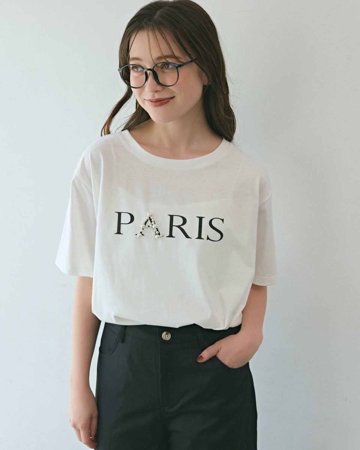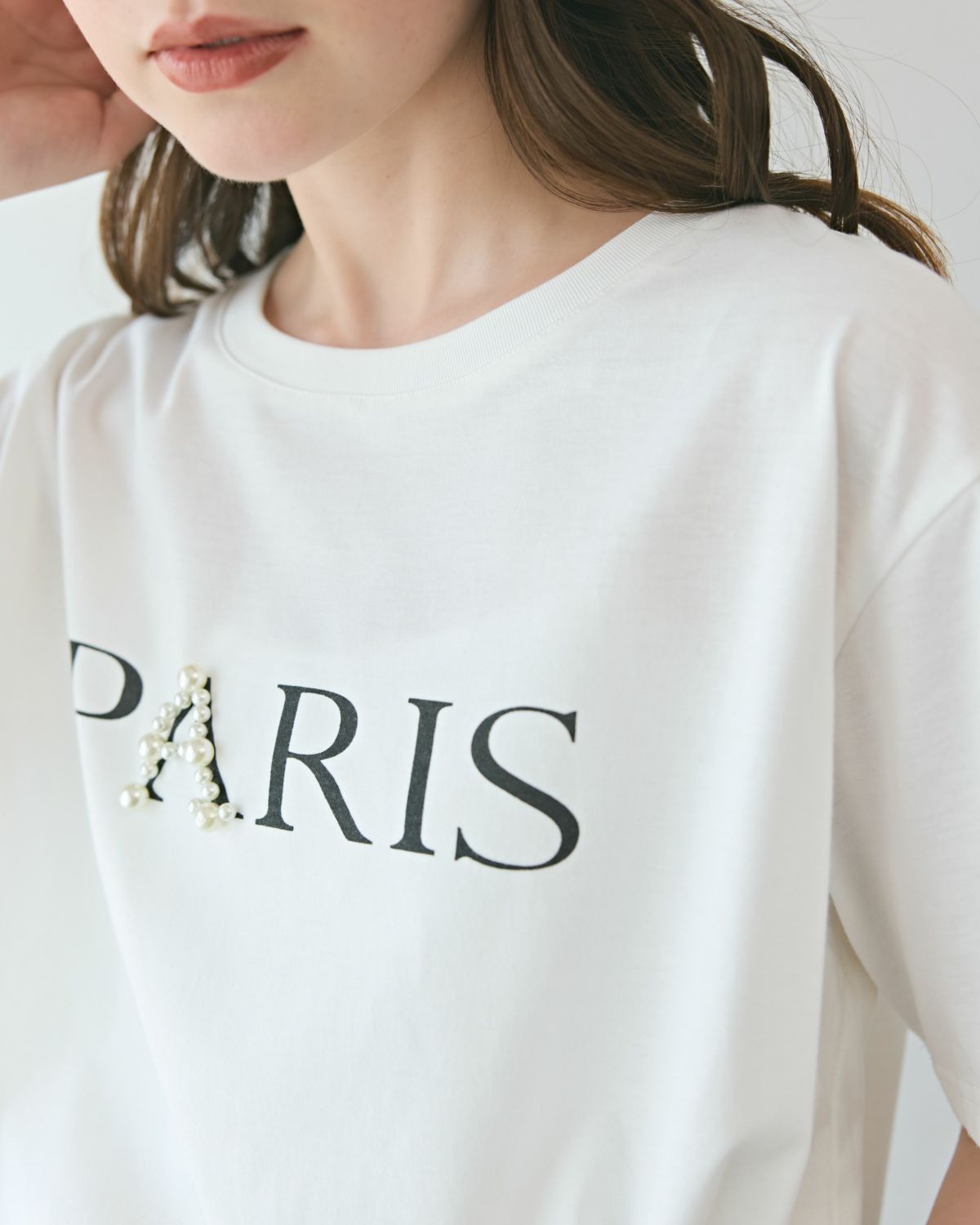 an chic ポイントパールロゴTシャツ