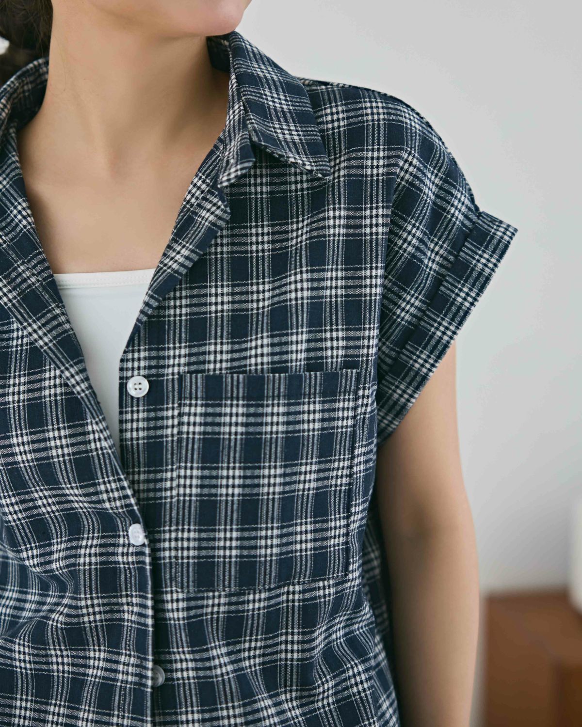 an chic 先染めチェックフレンチスリーブシャツ