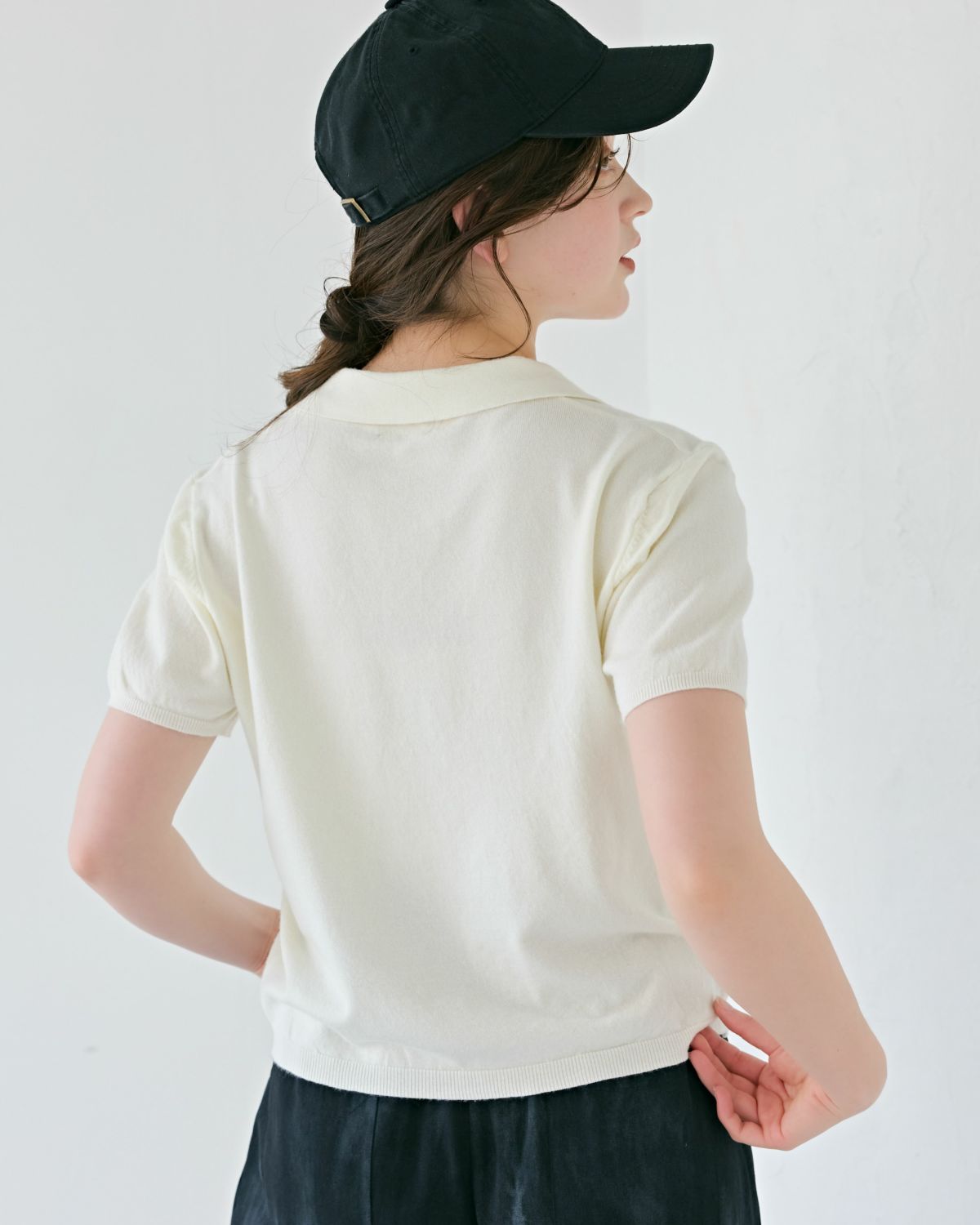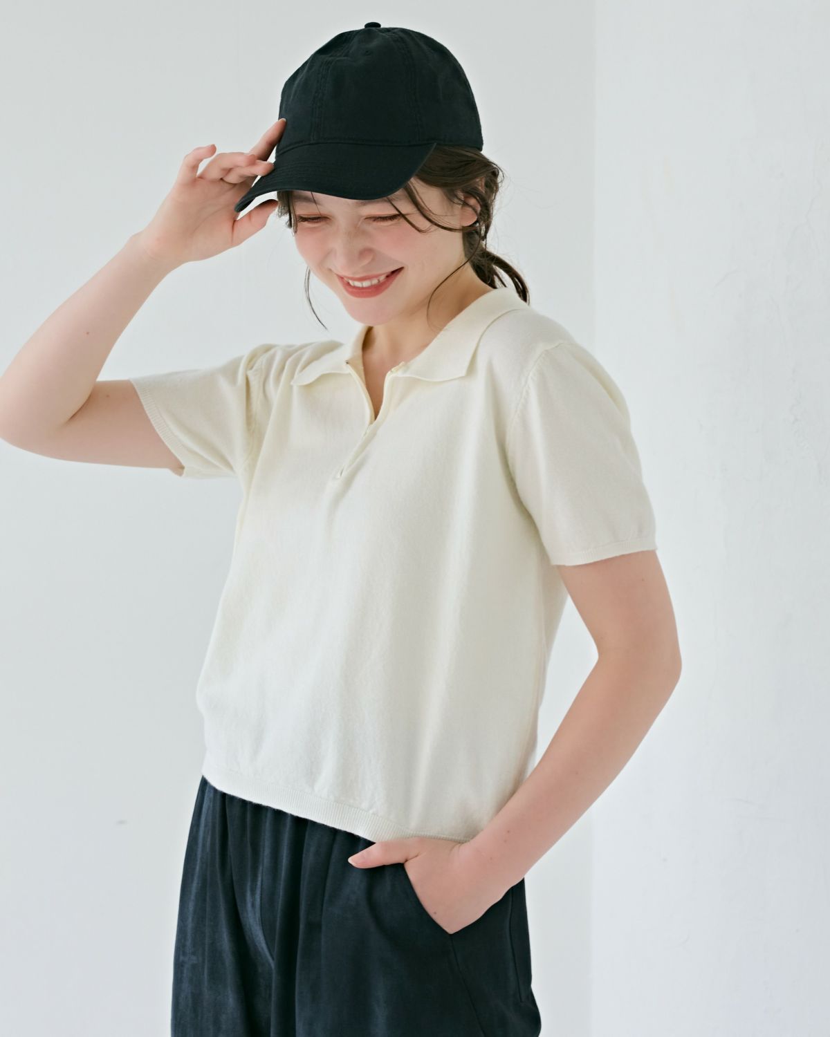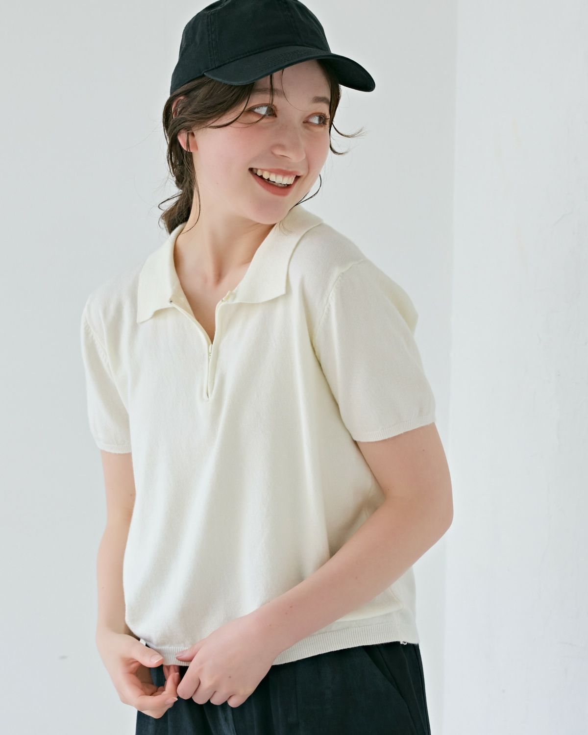 an chic ハーフジップニットポロ