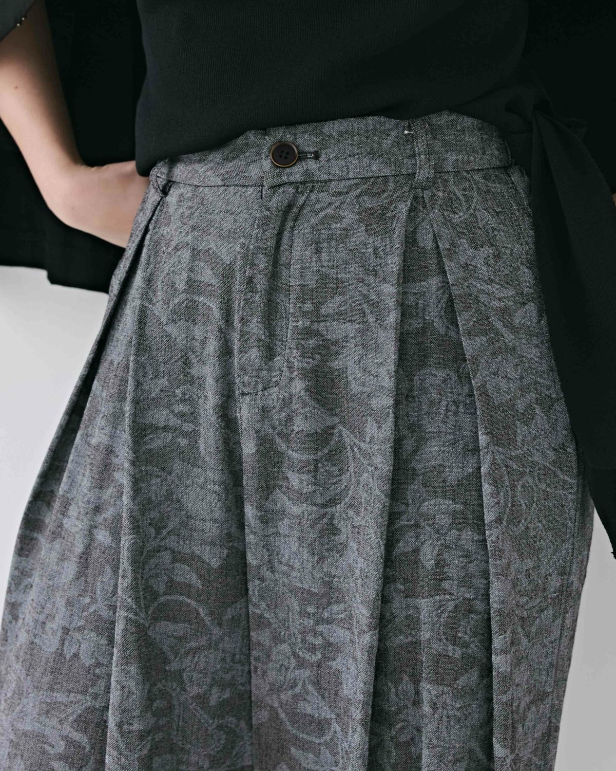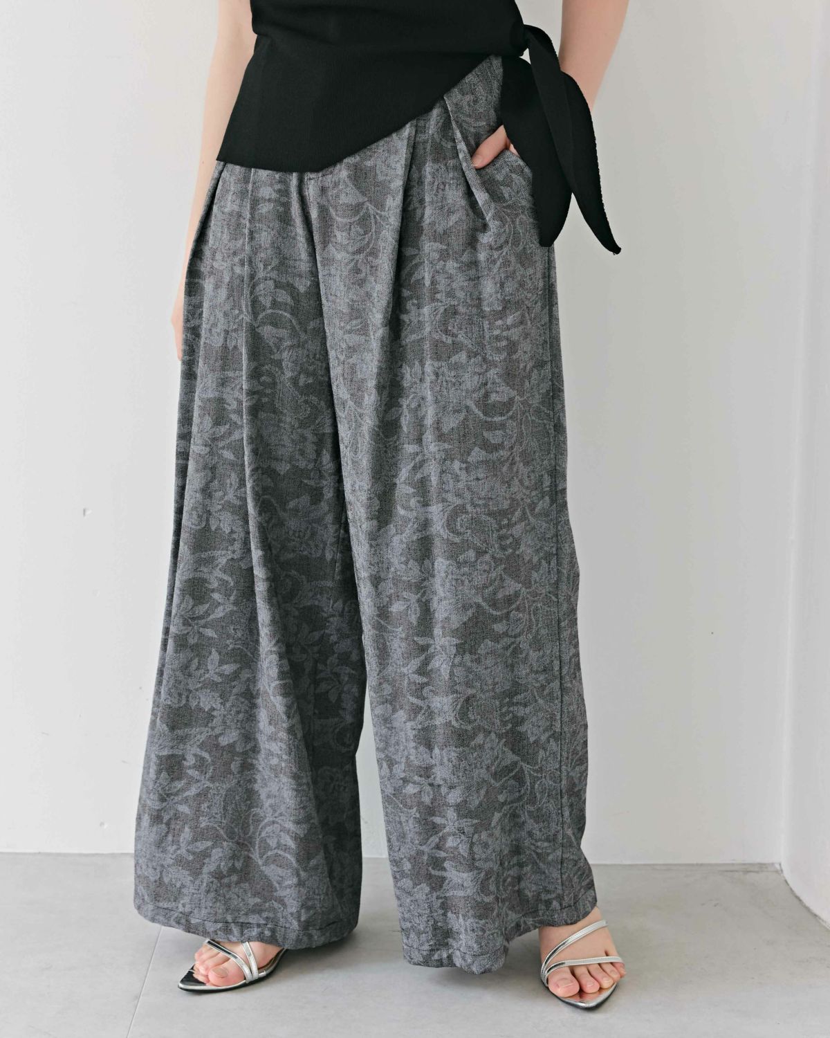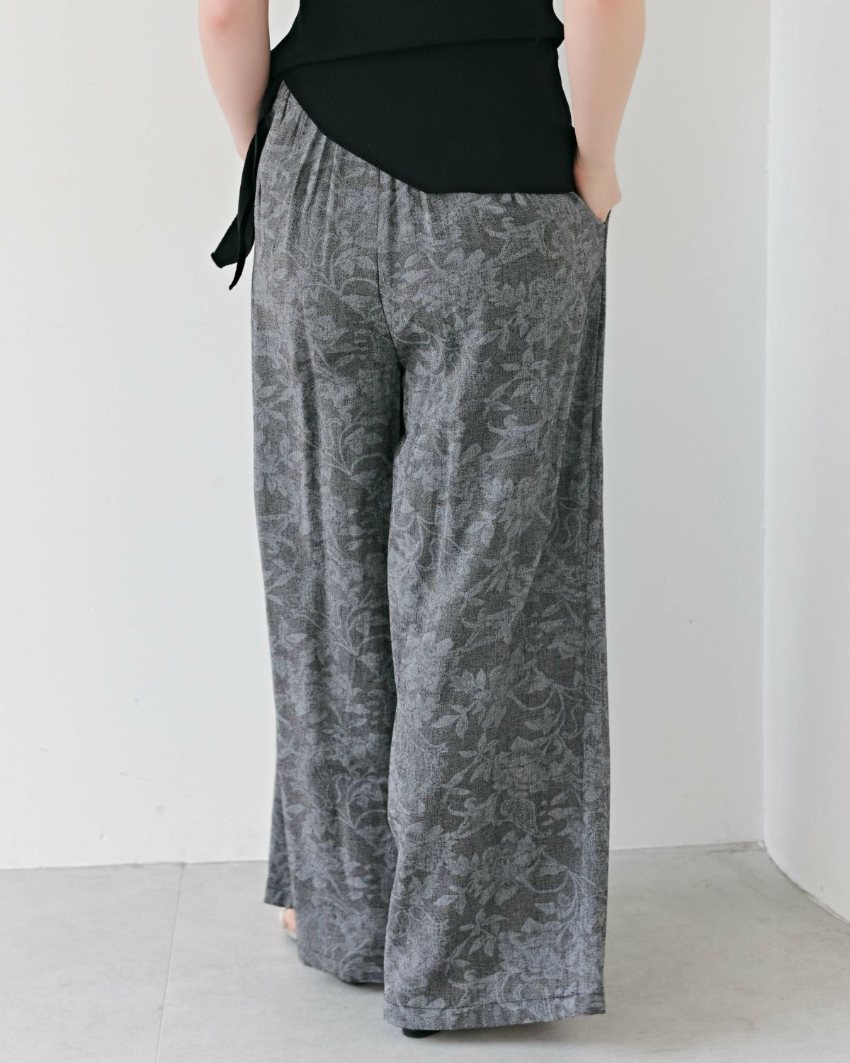 an chic シャドウ花柄タックワイドパンツ