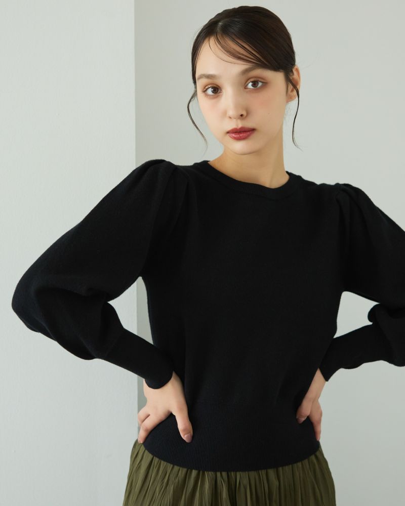 田中ちゃんが言ってた通り、モチモチの生地で、網目も詰まってるから暖かそう。肩幅広めでパフスリーブ苦手でしたが、これは着てても気にならなかったです。