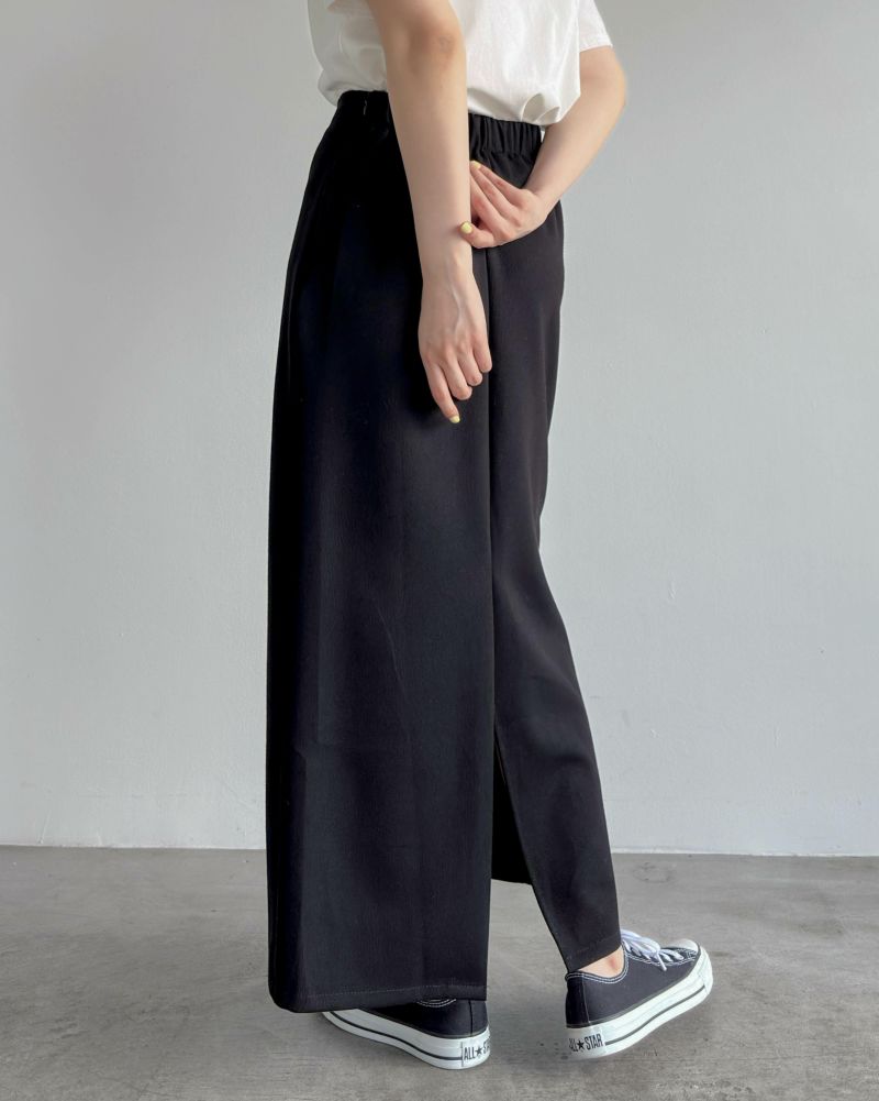 全面ゴムですが、トップスをインしてもだらしなく見えないよう、すっきりとしたデザインにこだわりました。