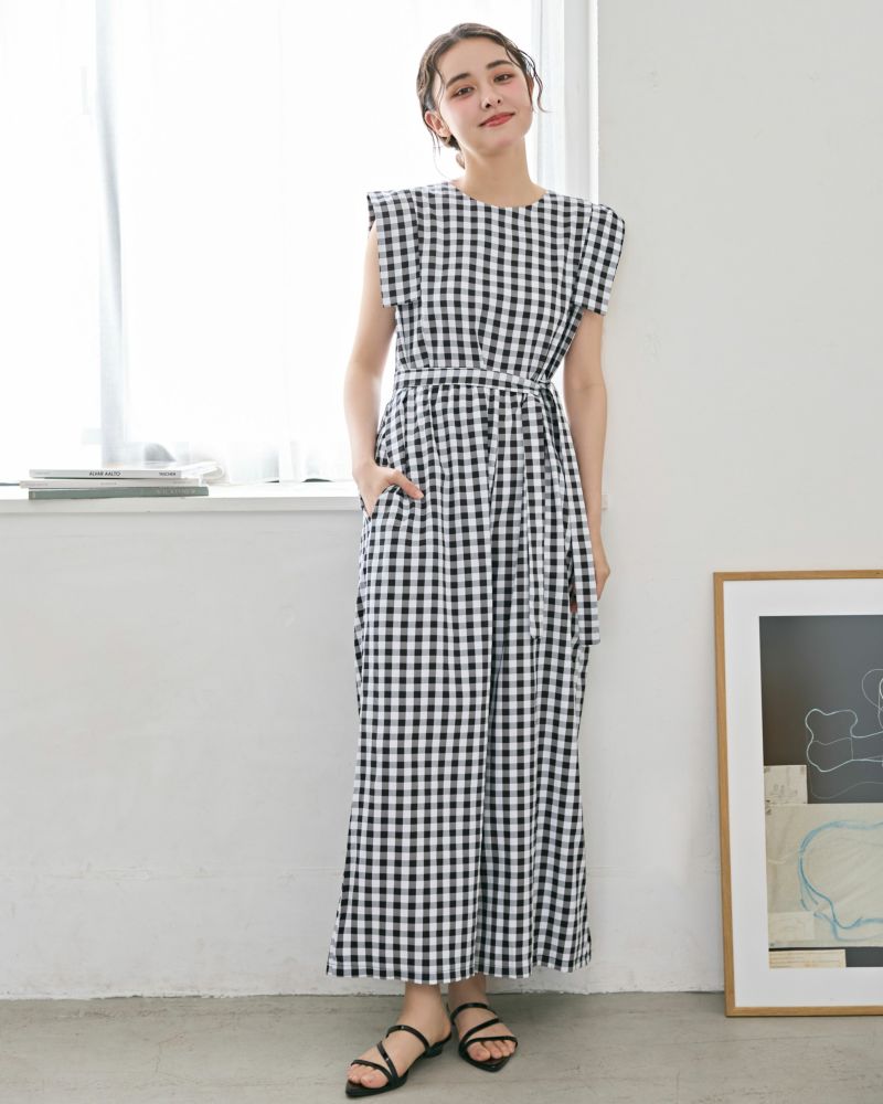 157㎝ 42Kg 普段無地が多いのでチェックを購入! さらっとしてるけど薄すぎない生地で、靴を履かない状態で丈ピッタリでした。 ウエストリボンをつければ多少丈の調整ができます^^ 暑くなったら沢山着たいです!