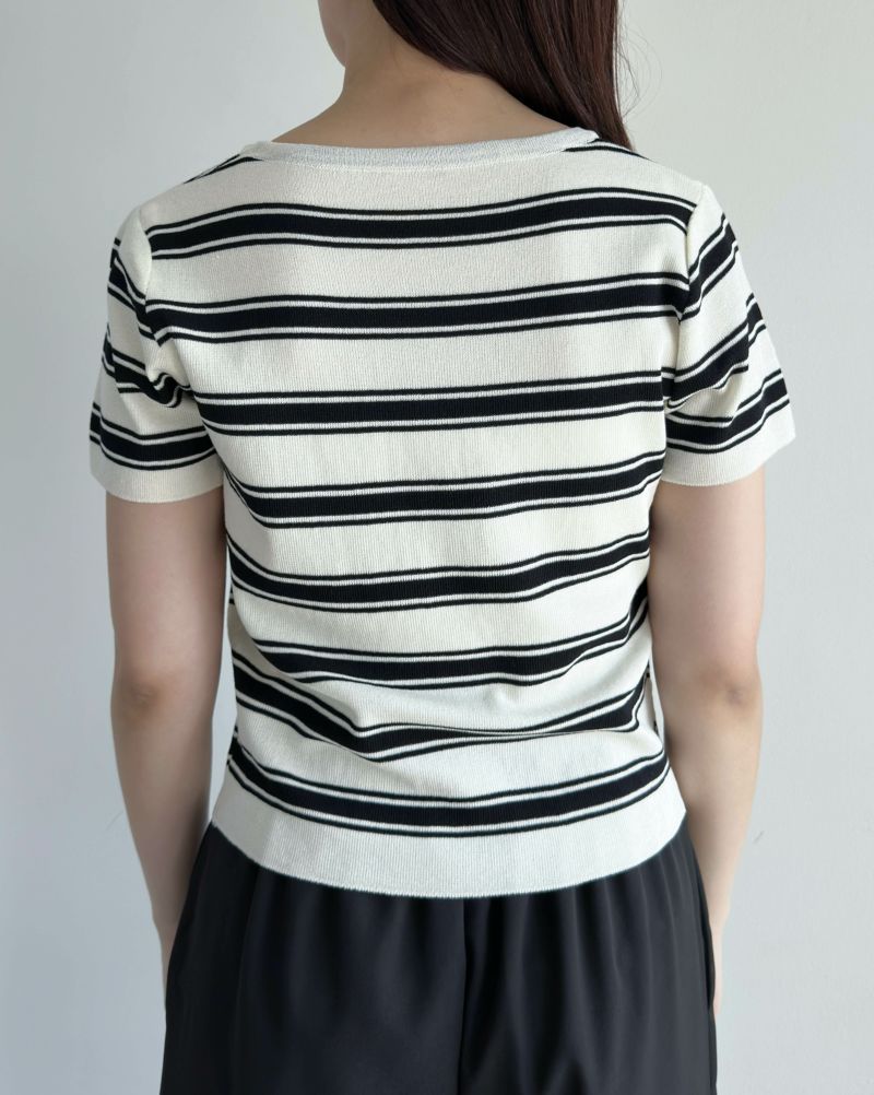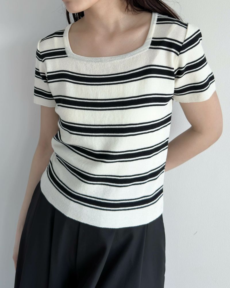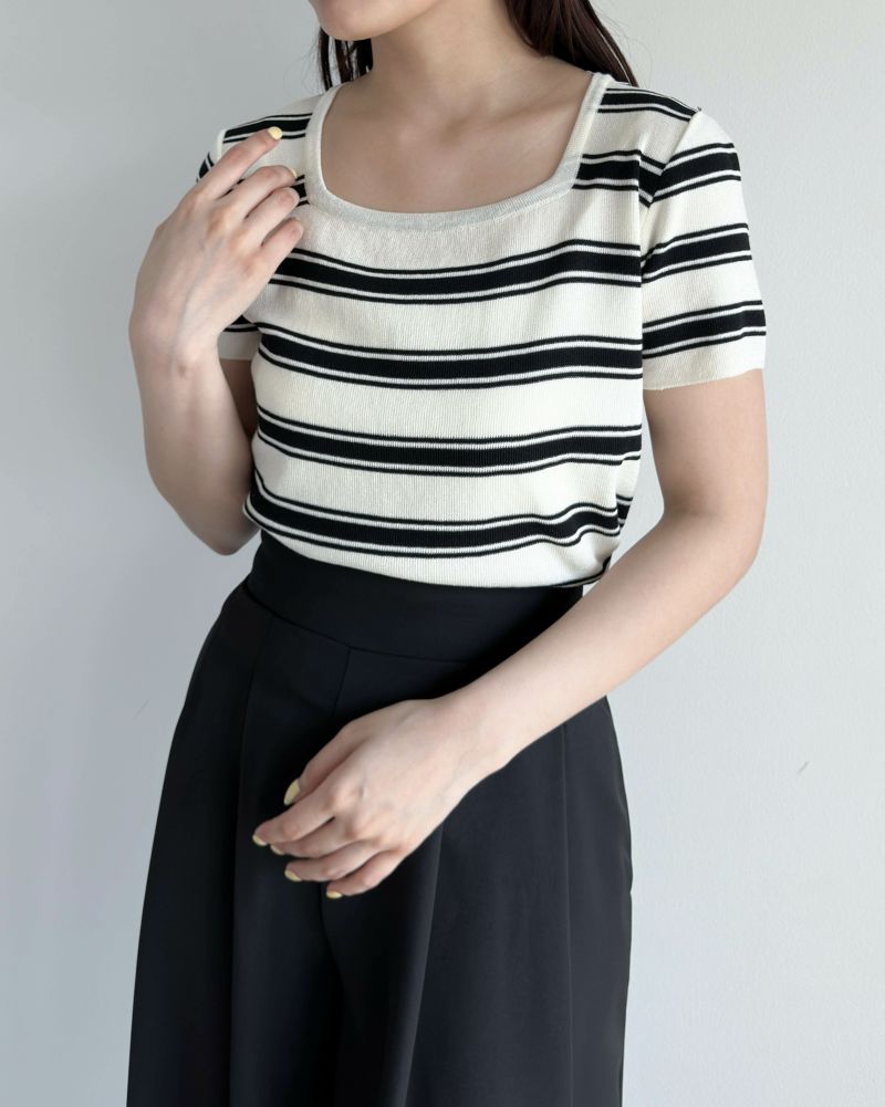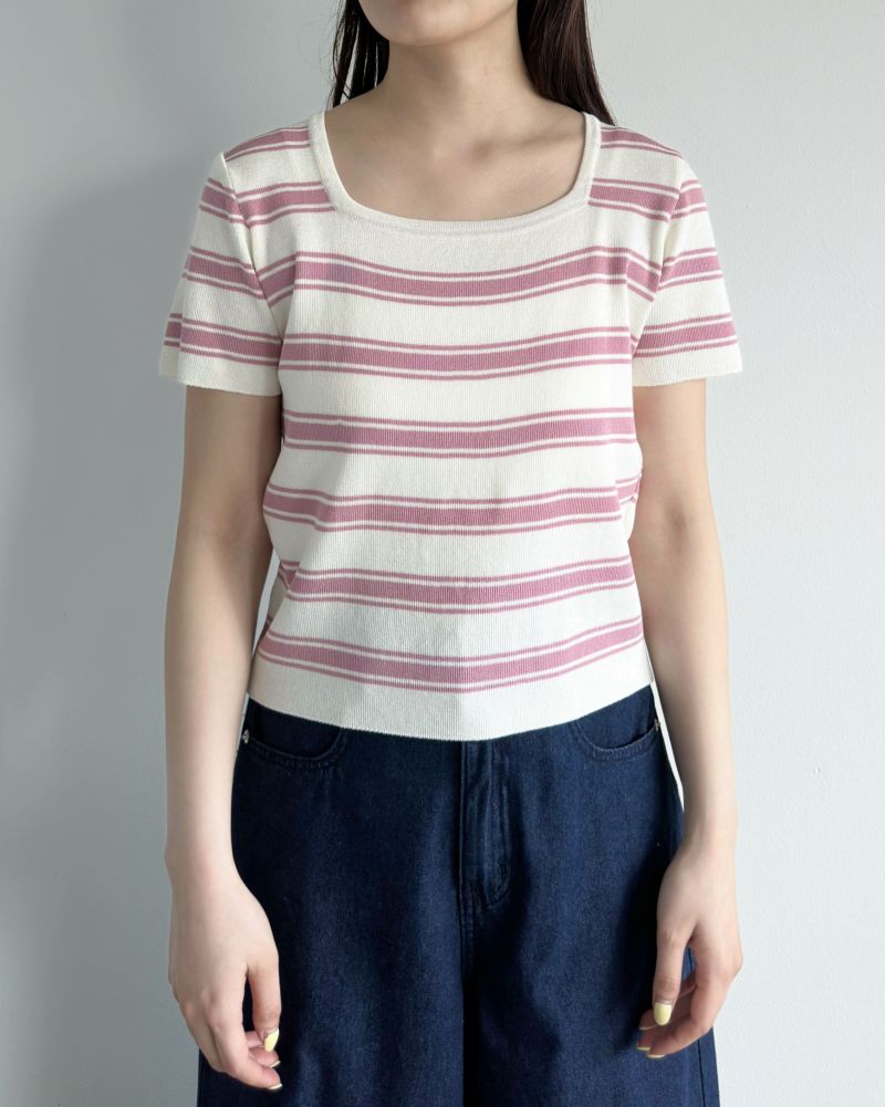 スクエアネック半袖ボーダーニット
