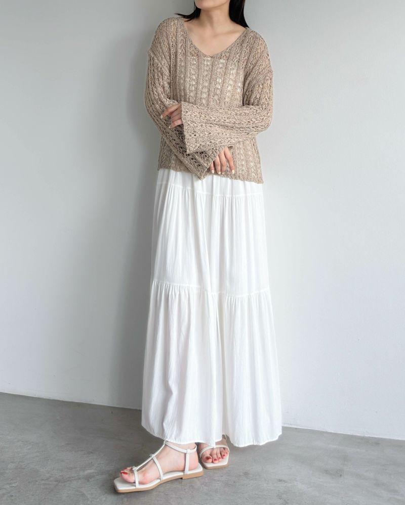鍵編みロングスリーブプルオーバー
