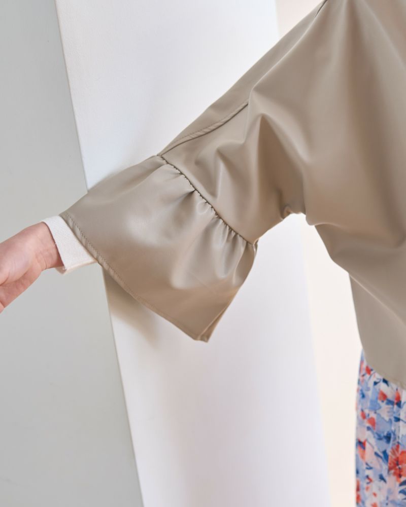 ノーカラーフレアスリーブフェイクレザーブルゾン