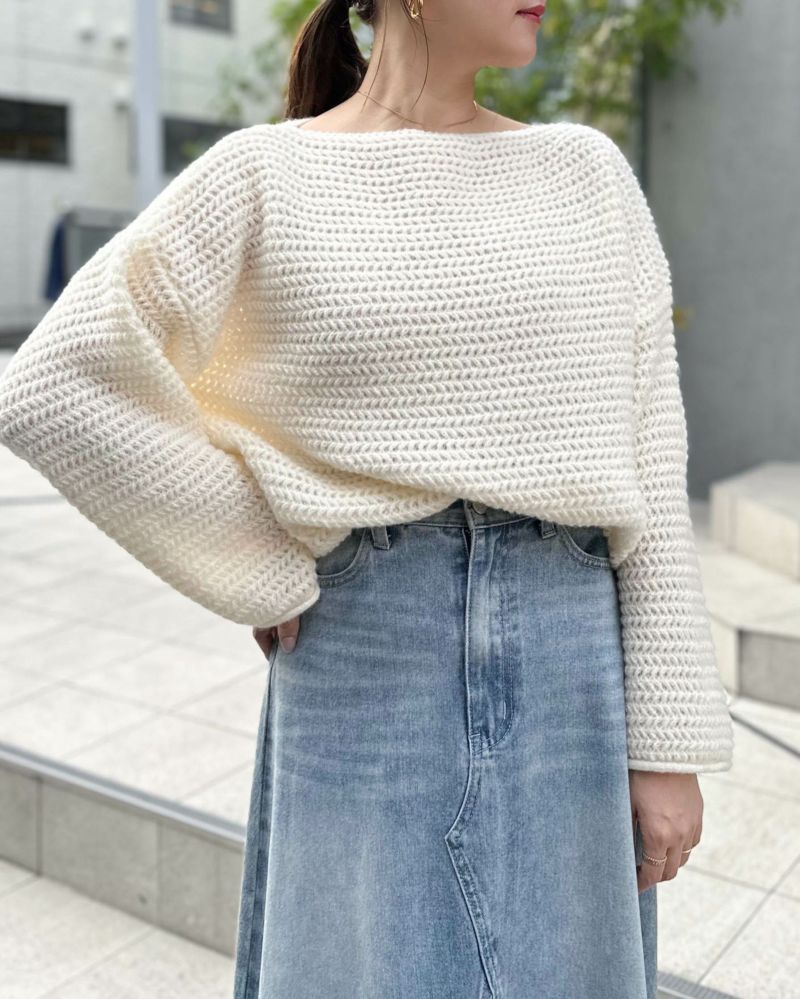 ボートネックフレアオーバーサイズニット