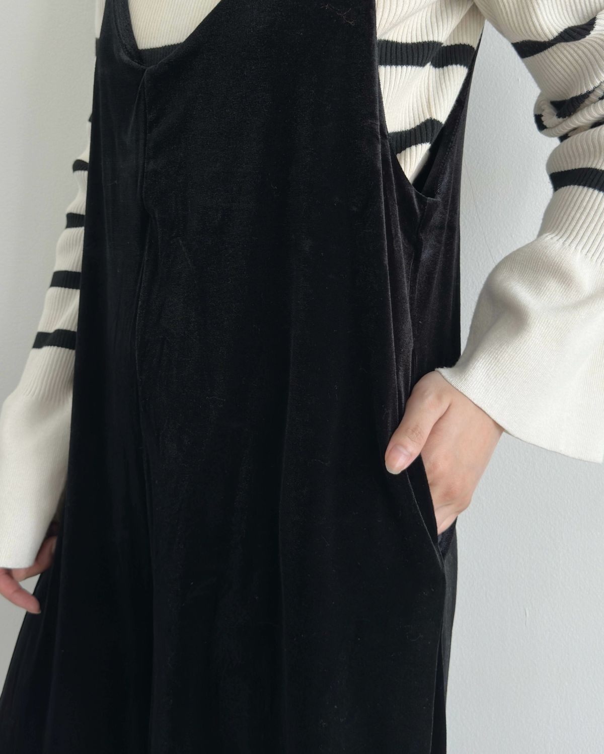 an chic Vカットベロアサロペット