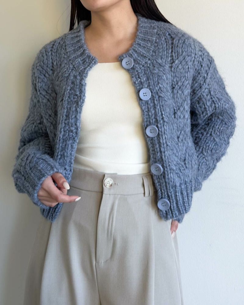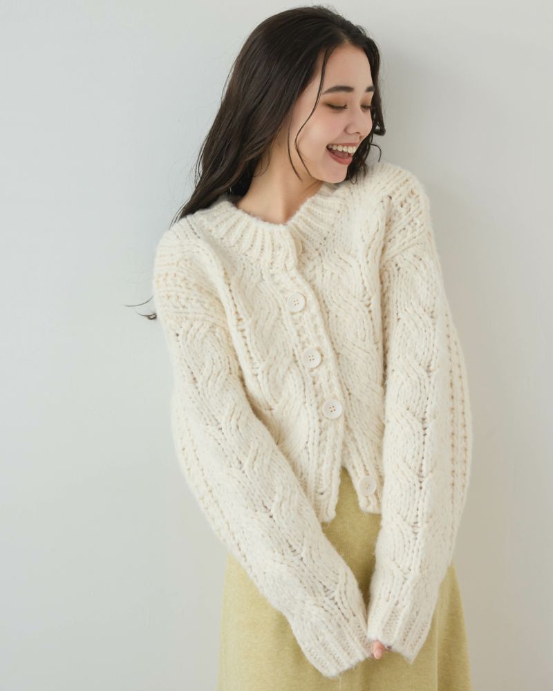 ケーブル編みニットカーデ