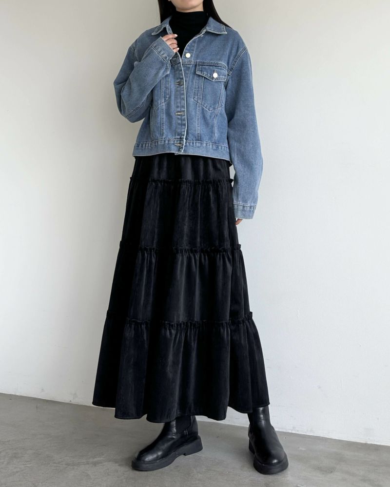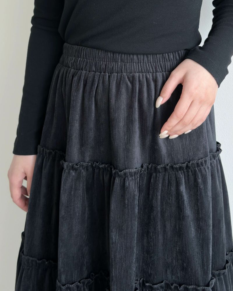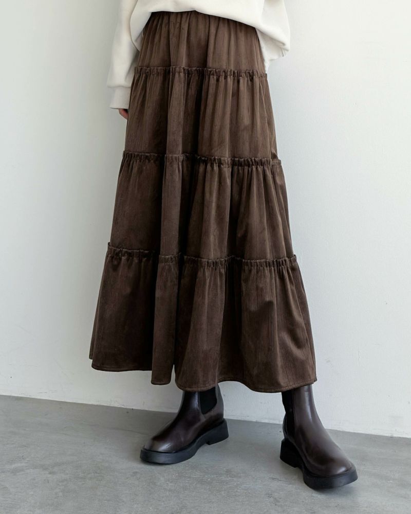 スウェードタッチティアードフレアスカート