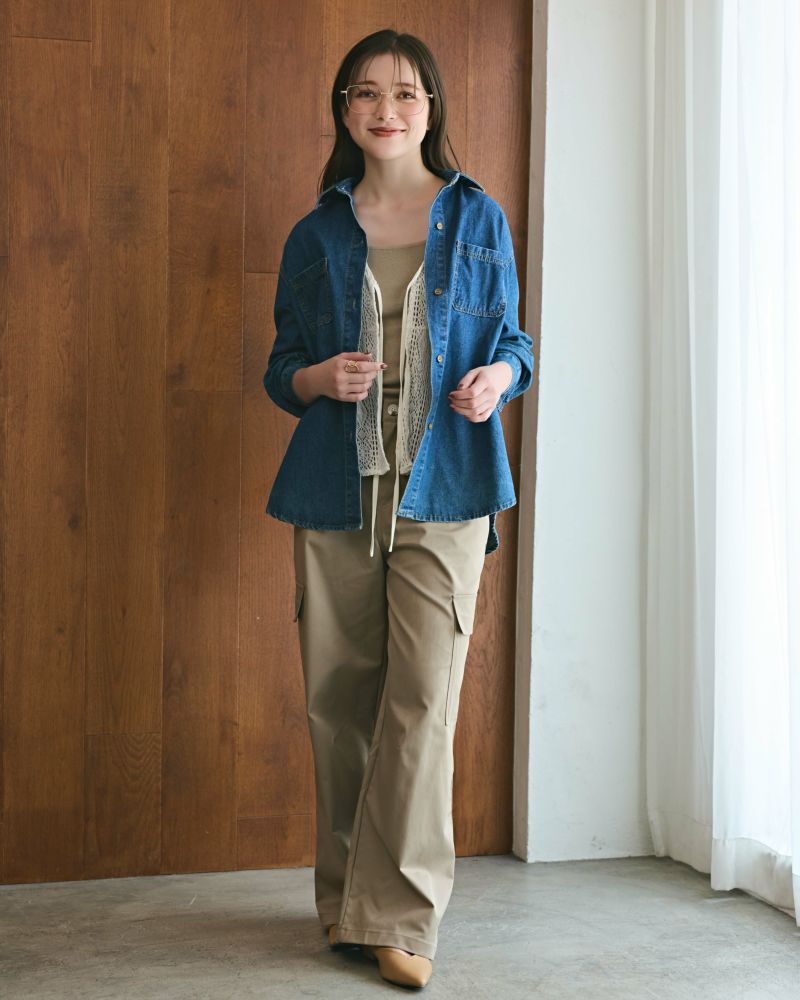 デニムジャケットよりも薄いとライブで教えていただき購入!普通のシャツよりは厚手ですが、薄くて着やすいです!ゴワゴワしていないので、長い季節活躍しそうです。