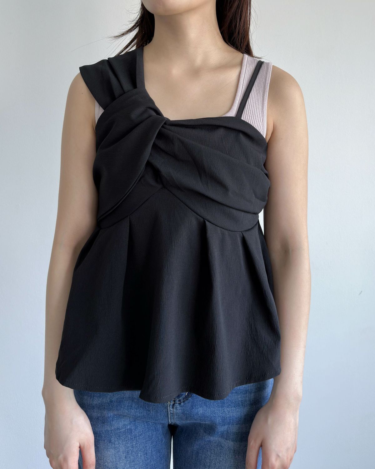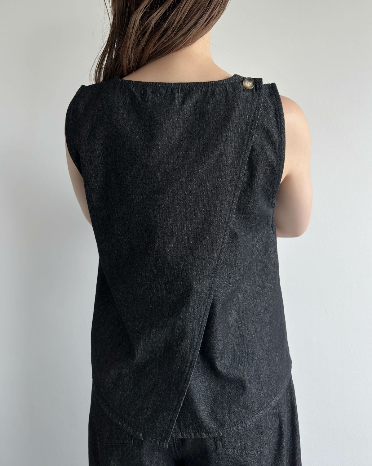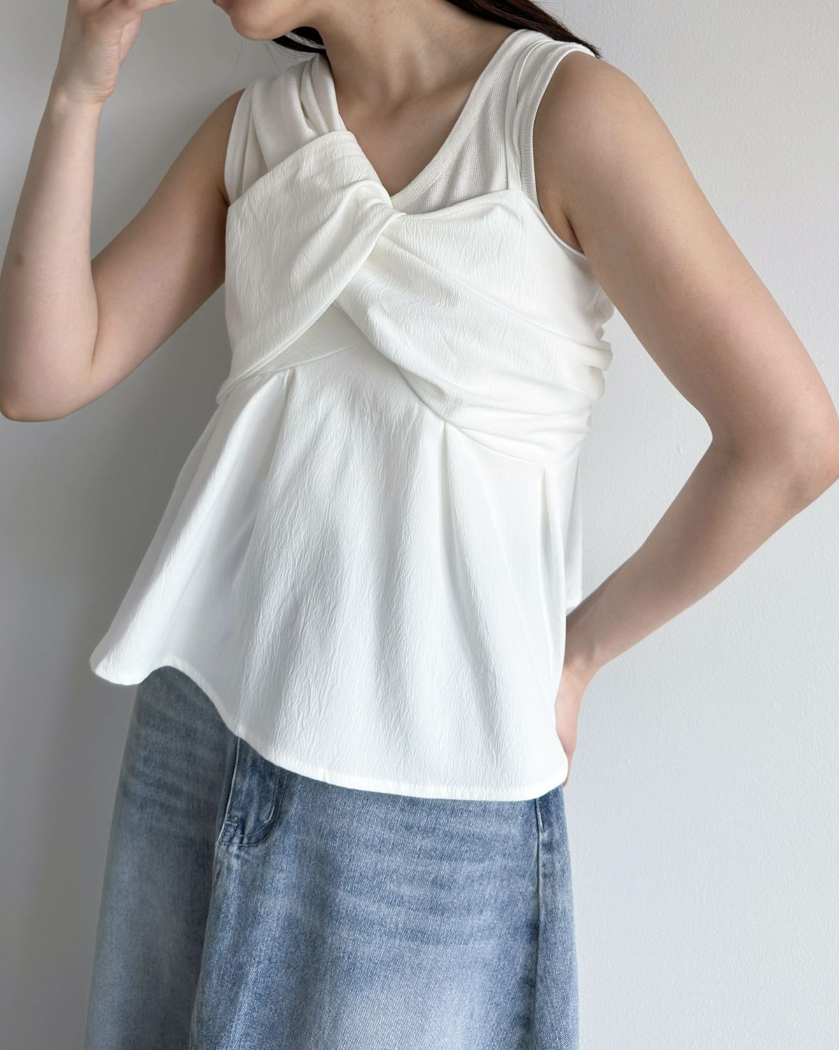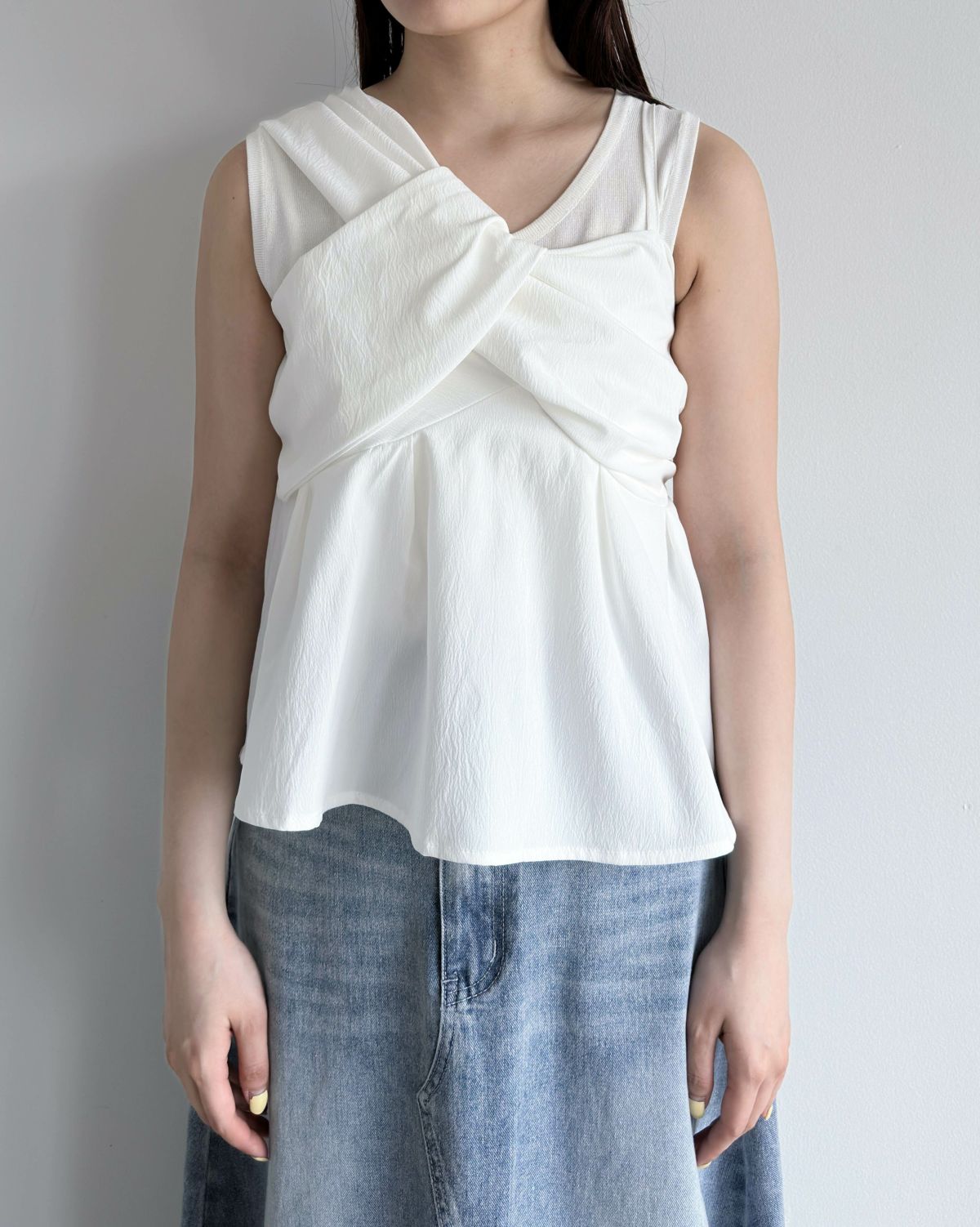an chic ワンウォッシュバックデザインスリーブレストップス