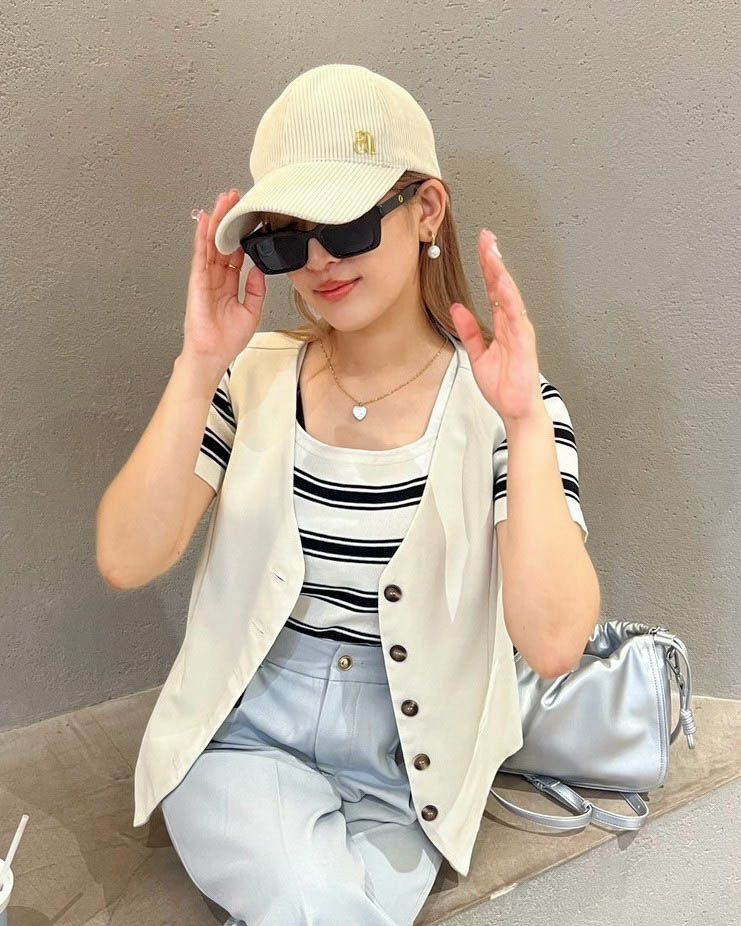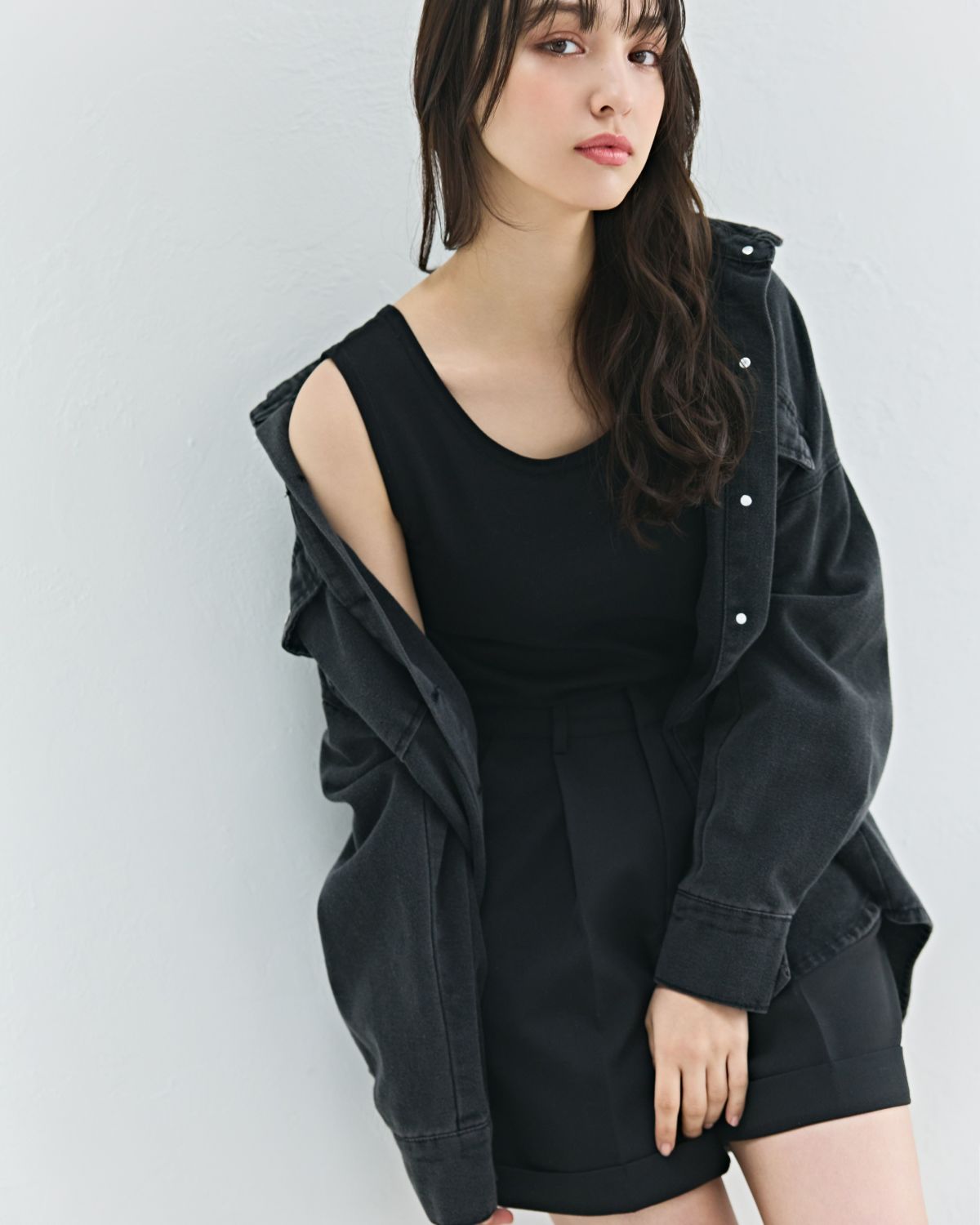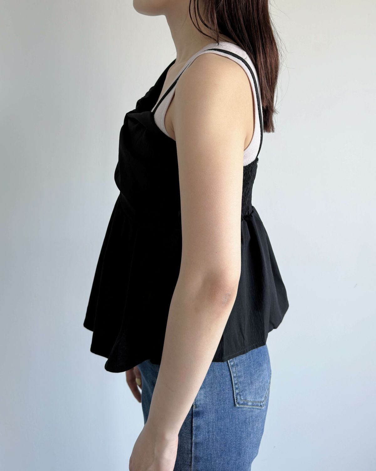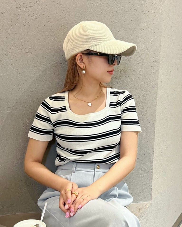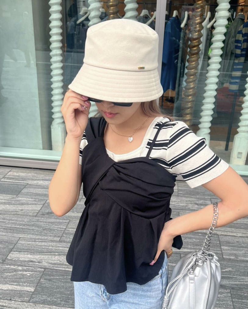 an chic ワンウォッシュバックデザインスリーブレストップス