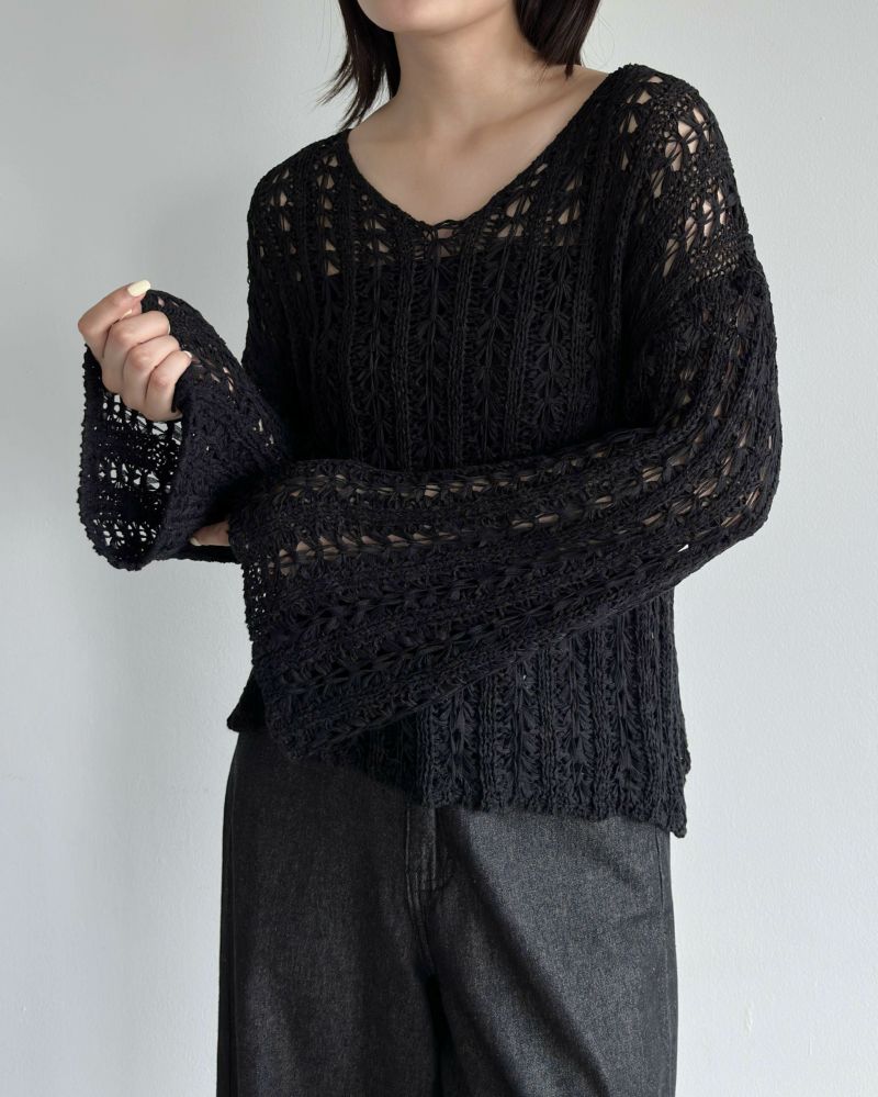 鍵編みロングスリーブプルオーバー
