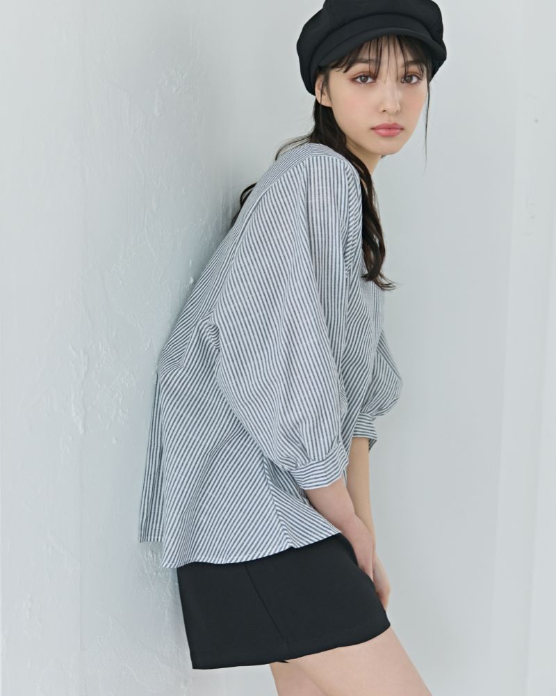 Vネックストライプフレアブラウス